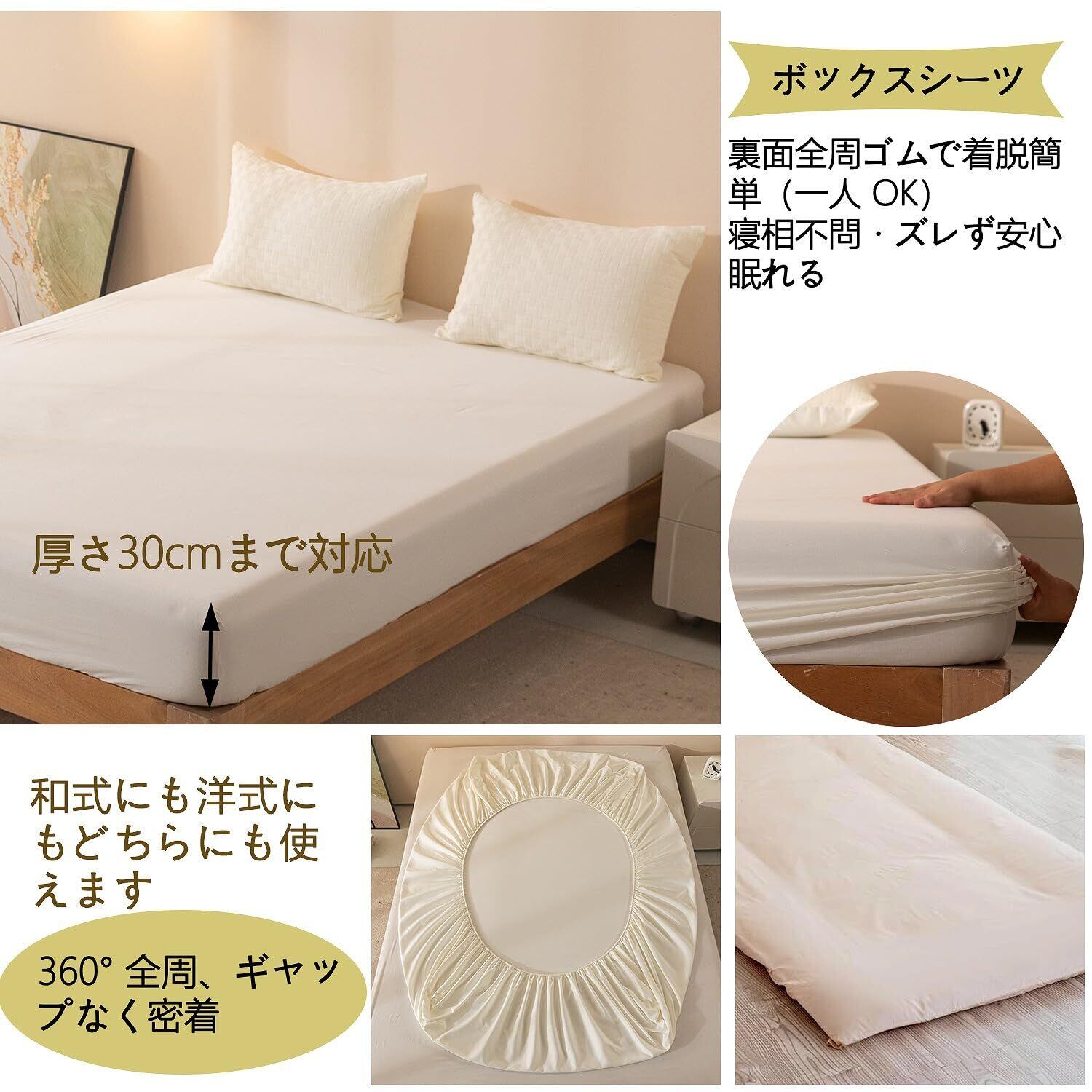 【布団セット・仕様】シングル 3点セット:「掛け布団カバー・150x210cm(1枚)」:片側全開210cmファスナーを使用、布団留め紐8ヶ所付き。「ボックスシーツ・100X200+30cm(1枚)」:全周ズレ防止ゴム付き、高さ5-30cmの敷き布団とマットレスの底まで包むことが可能。「枕カバー・43X63cm(1枚)」:封筒式で出し入れが簡単です。洋式・和式どちらの寝具にも対応可能です。