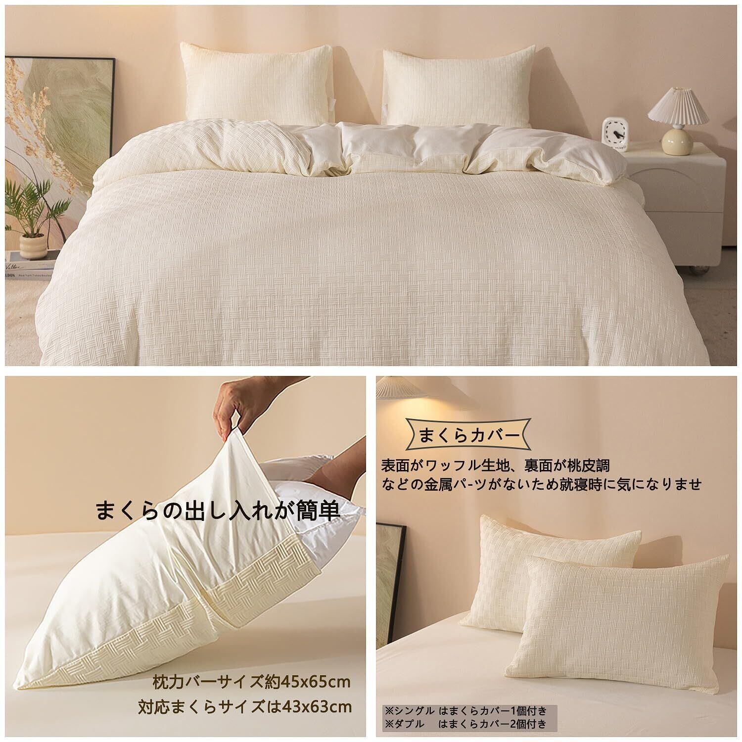 NOLAYA 布団カバー シングル 3点セット ワッフル生地 掛け布団カバー ボックスシーツ 枕カバー 寝具カバーセット 洋式・和式兼用 肌に優しい 速乾 丸洗い おしゃれ 北欧風 オールシーズン(ベージュ)