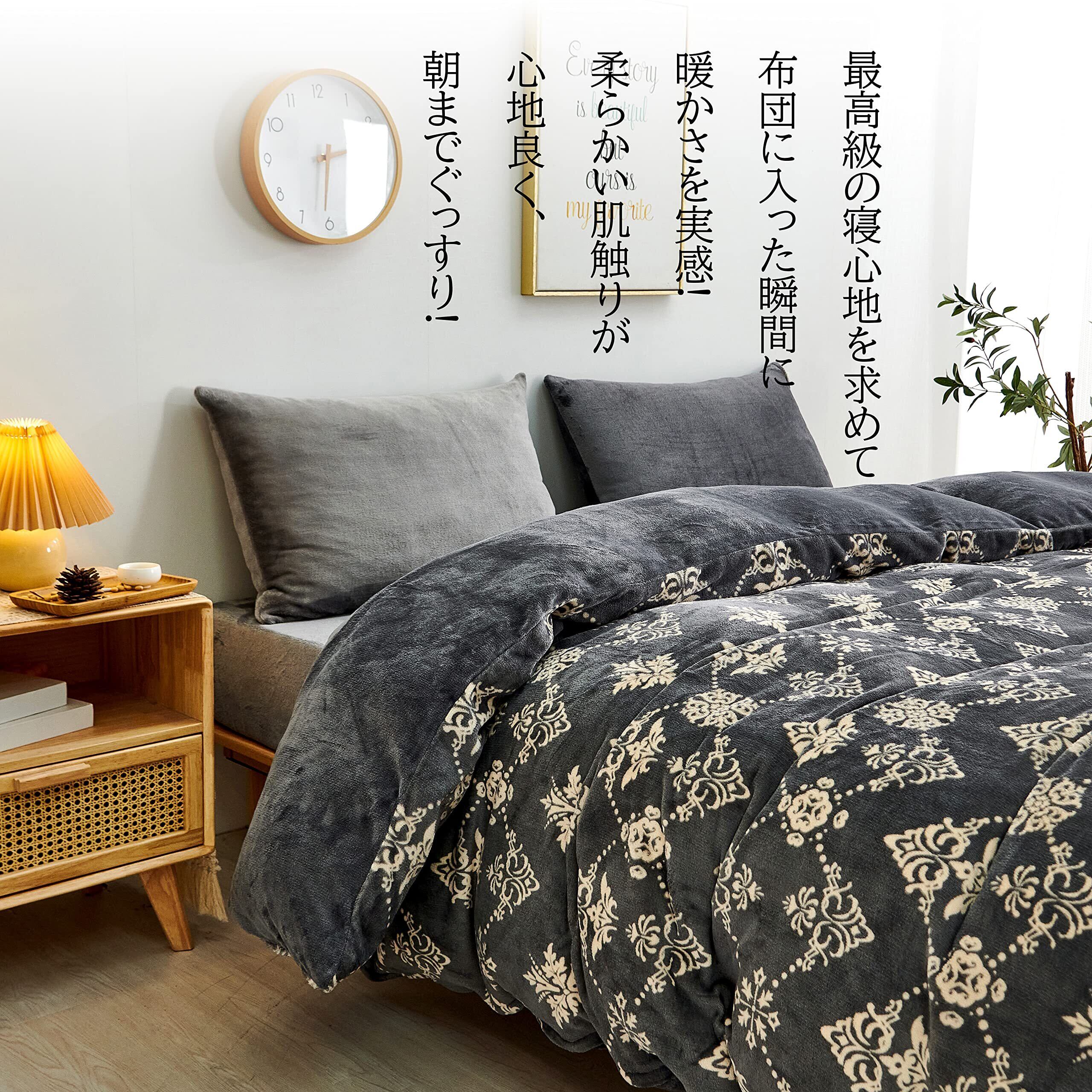 【新春セール】Tametra 掛け布団カバー あったか 布団カバー マイクロファイバー フランネル 毛布タッチ 冬用 北欧風 抗菌 毛玉なし 静電気防止 防寒対策 着脱簡単 通気性 暖かい 保温性 全開ファスナー 6ヶ所ひも付 洗える (ダブル・190X210cm 欧風柄グレー)