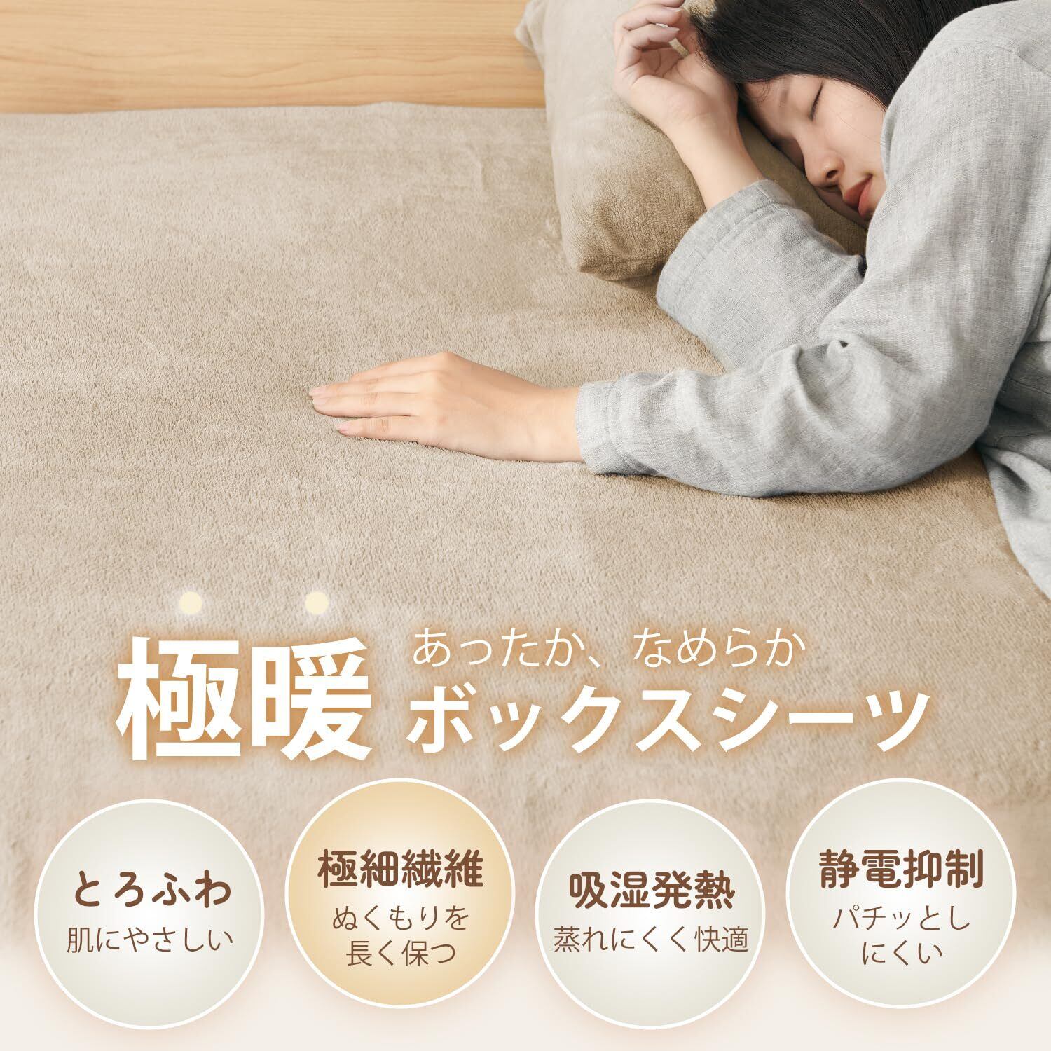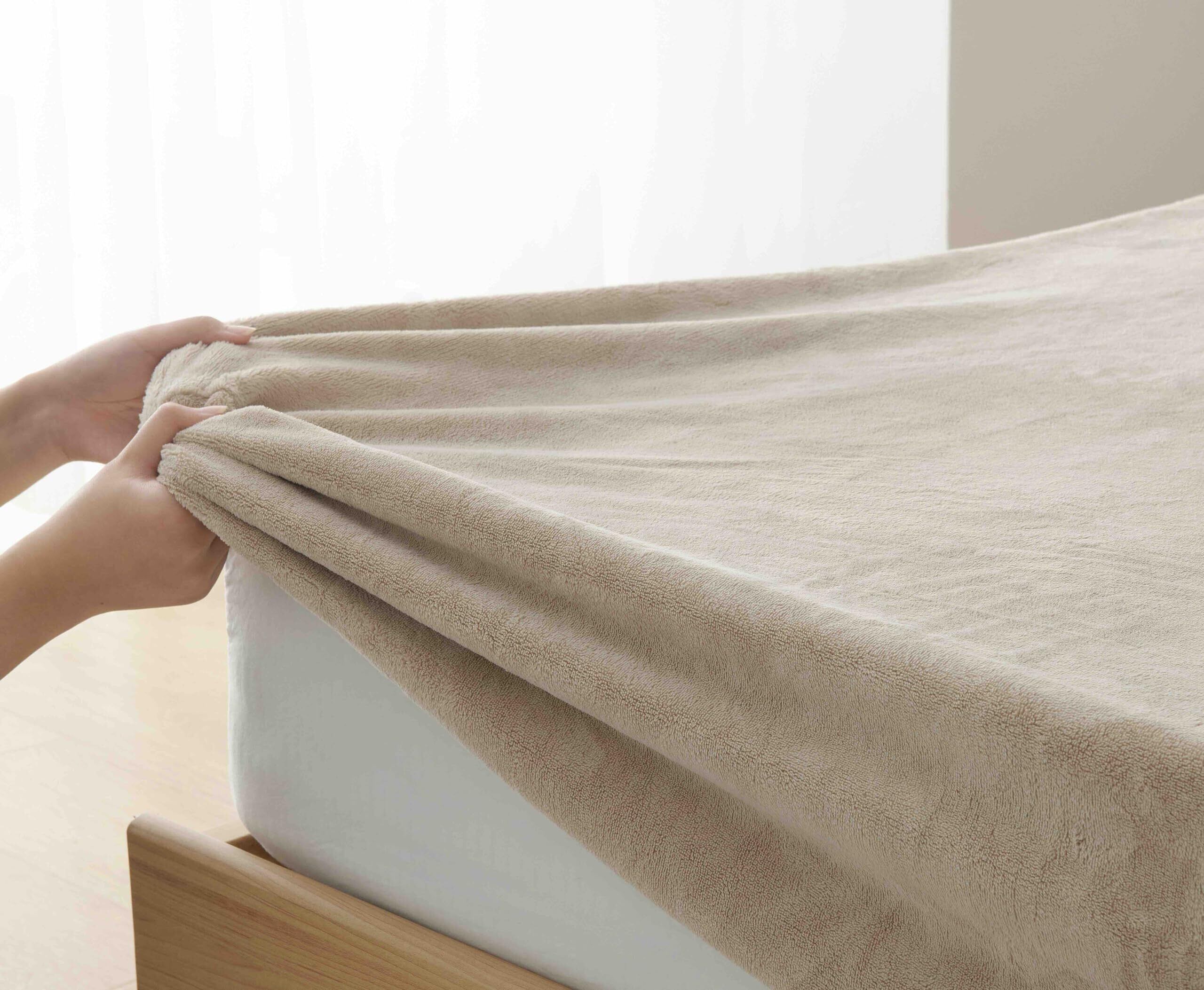 【数量限定】Atokazo あったか ボックスシーツ 100X200cm マイクロファイバー 冬用 秋 冬 洗える 毛玉なし 暖か 暖かい 極暖 なめらか 着脱簡単 静電気防止 防寒対策 シーツ マットレスカバー ベッドカバー ベットカバー ベッドシーツ シングル ベージュ
