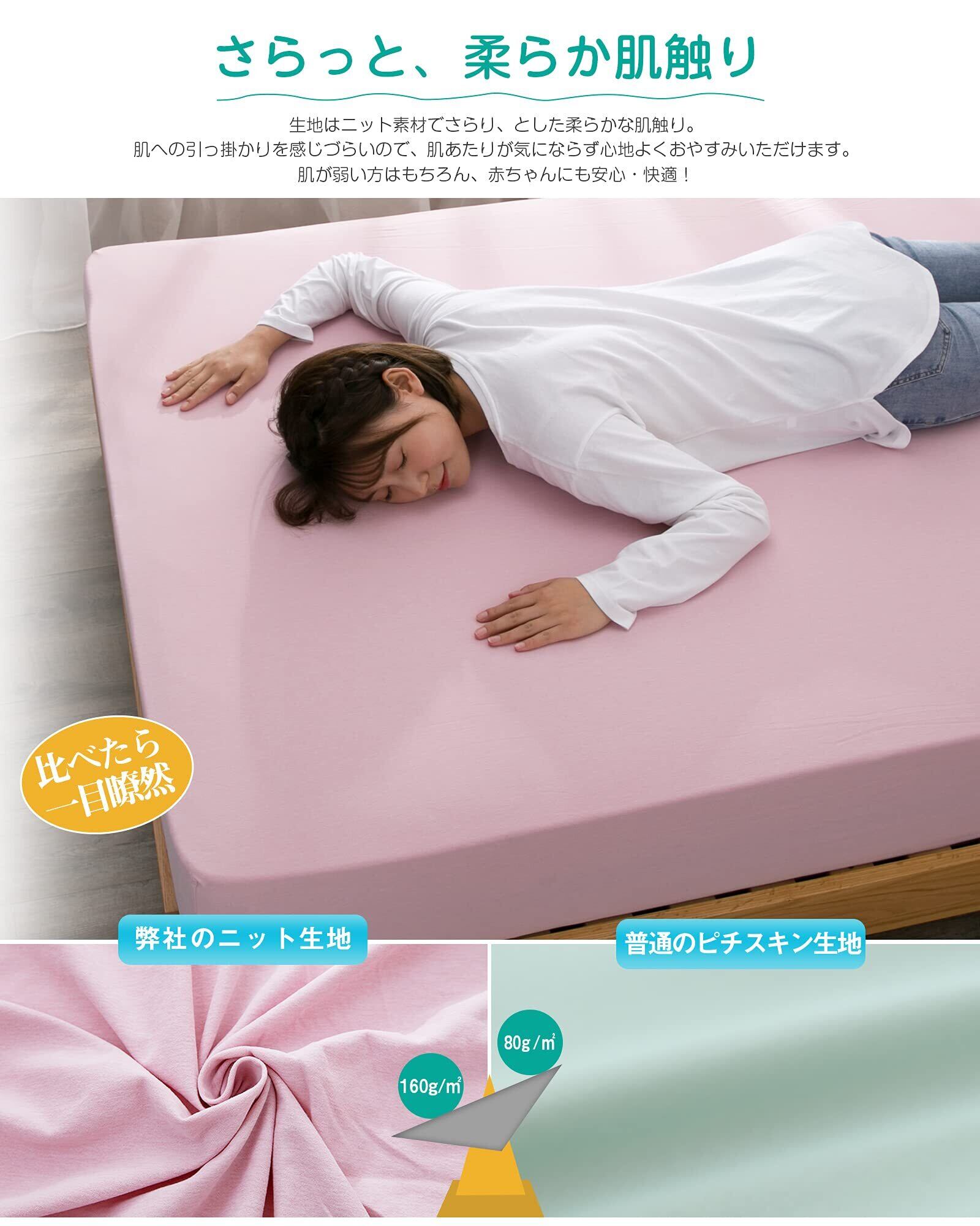 【オールシーズン向けシーツ】:春秋はサラサラ、冬は暖かシーツで一年中快眠をサポート。<目付>のベッドシーツはオールシーズン用で「160g/㎡」の目付の生地を使用、普通のピチスキンシーツ生地の約2倍ぐらいの重さです。それに、 丁寧に織り上げることにより、目詰みも良く、耐久性にも優れたしっかりとした生地に仕上がりました。