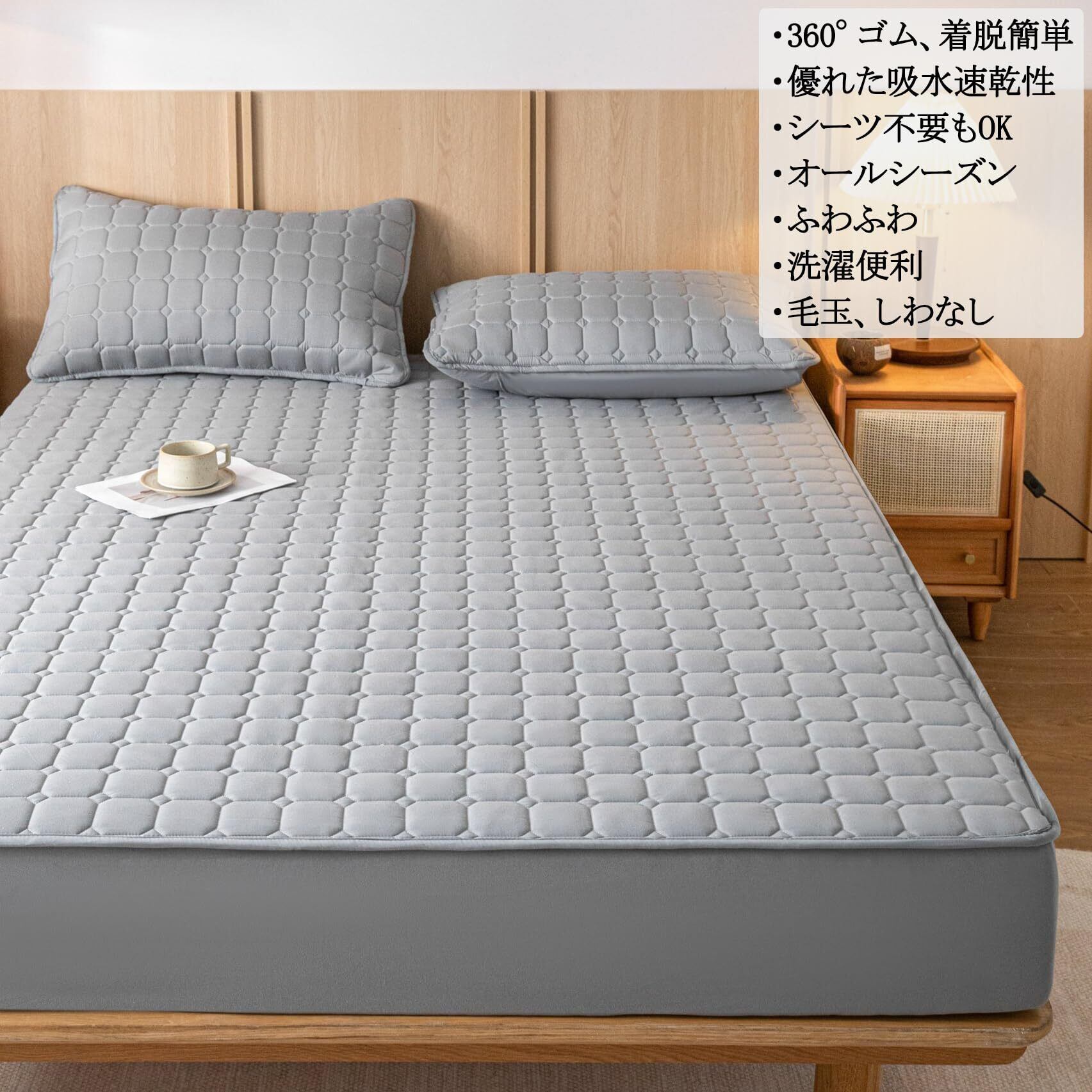 ボックスシーツ 敷きパッド マットレスカバー ベッドパッド 三層構造ベッドカバー 毛玉なしベッドシーツ ふわふわ敷き布団カバー 全周ゴム付き 着脱簡単 柔らかく肌に優しい 吸湿速乾 抗菌防臭 防ダニ 丸洗い可能 オールシーズン USEEWOOW (グレー, クイーン・160×200)