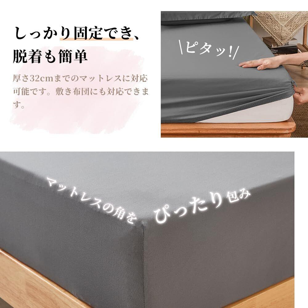 【弾力 MAX】MISOLER ボックスシーツ吸水速乾のびのび ベッドシーツ 毛玉なし ベッドカバー マットレス・敷ふとん兼用 ぴったり 通気性 夏・冬オールシーズン しわにならない 着脱簡単 抗菌防臭 (ダブル~クイーン用・140~160cm×180~210cm グレー)