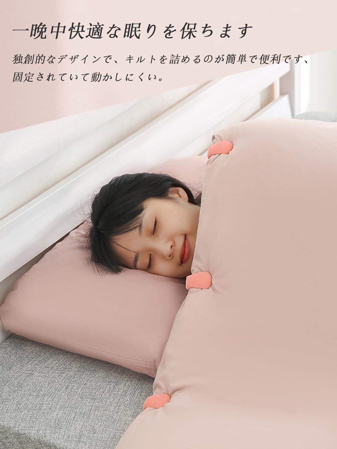 【針のないデザイン】のキルトクリップは針のないデザインを採用しています。 そのため、クリップが皮膚や寝具に食い込む心配はありません。 さらに、滑り止めストライプのデザインにより、クリップでキルトをしっかりと固定し、就寝中のズレや移動を防ぎます。軽量設計なので掛け布団に重さを加えません。