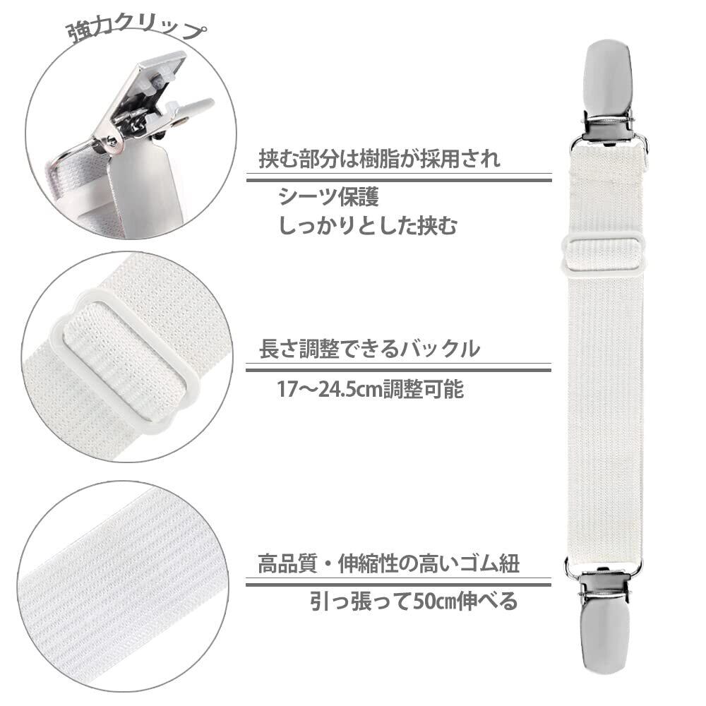 LIHAO ベッドシーツクリップ ズレ防止 クリップ 布団クリップ 調節可能 シーツ 布団 滑り止め シーツ固定 4本入 アイロン台カバークリップ 白 ズレ防止クリップ ソファー シーツ ズレ防止