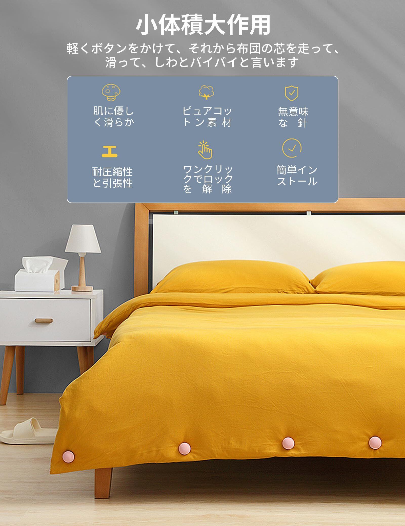 【安全設計】本製品は柔らかい頭のマッシュルームバックルを採用しているので、肌を傷つけたり、キルトを傷つけたりする心配はありません。 ぜひご利用ください。