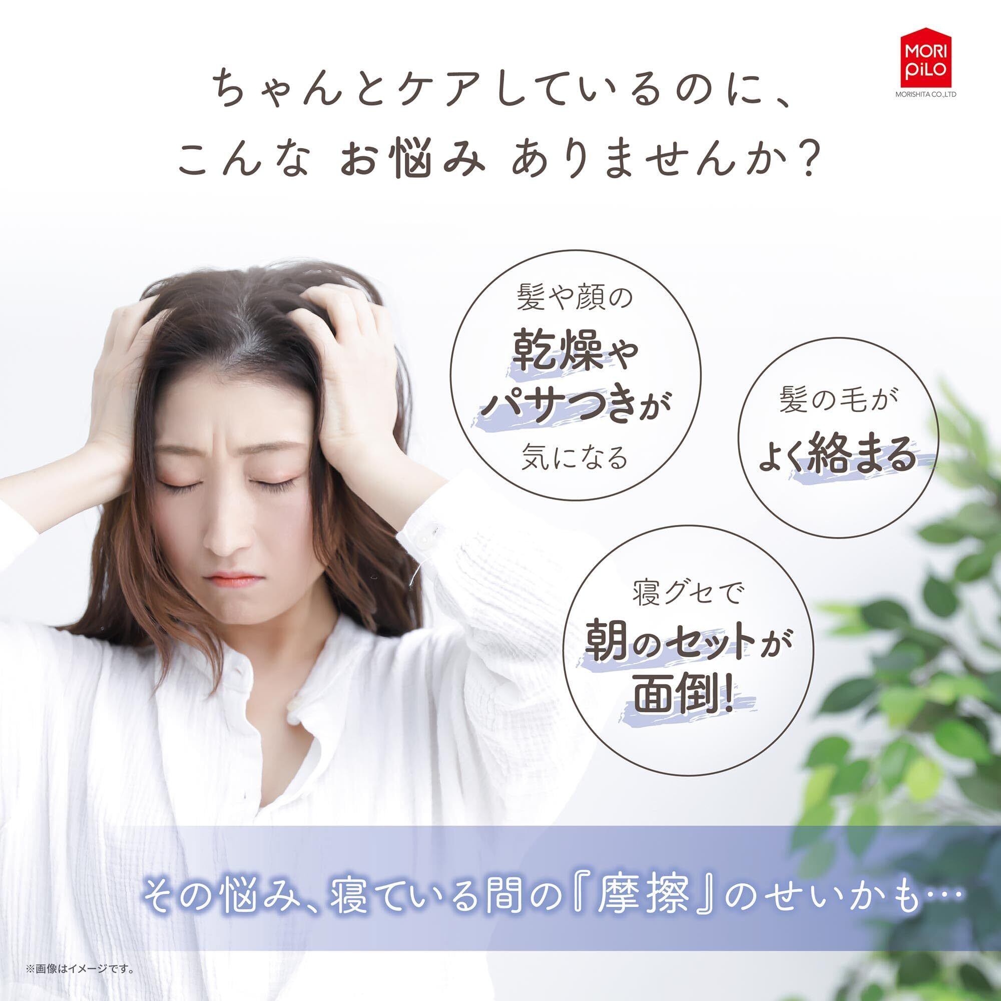 ●低摩擦生地に3つの保湿成分(マリンコラーゲン・シアバター・ローズヒップ)がたっぷり入って、髪とお肌にやさしい枕カバーです。