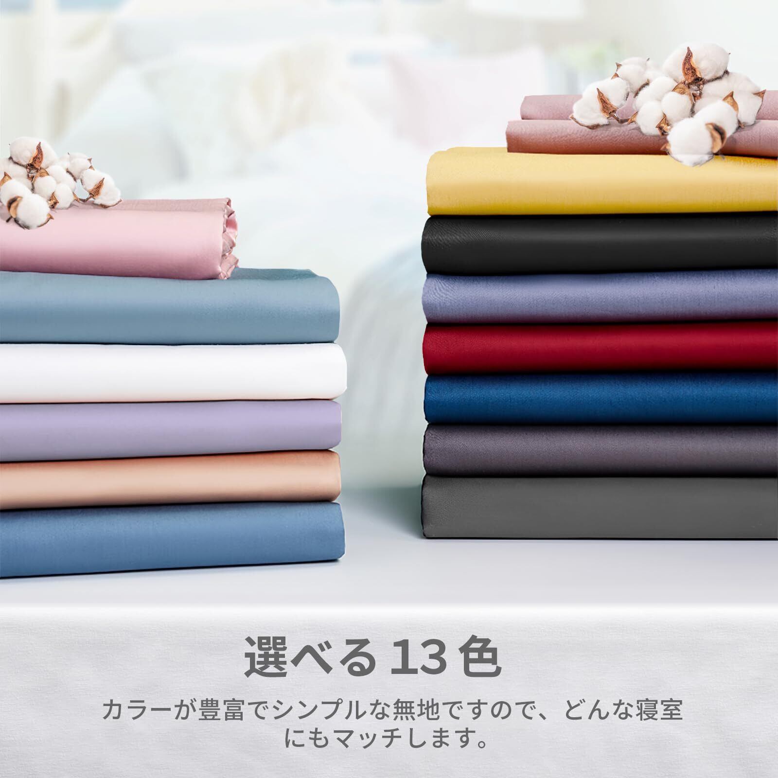 【仕様】サイズ:ピローケースは標準サイズ43×63cmの枕に適用します。重量:(約)90g。表面:サテン織りです。包装:封筒式。選べる13色、カラーが豊富でシンプルな無地ですので、どんな寝室にもマッチします。