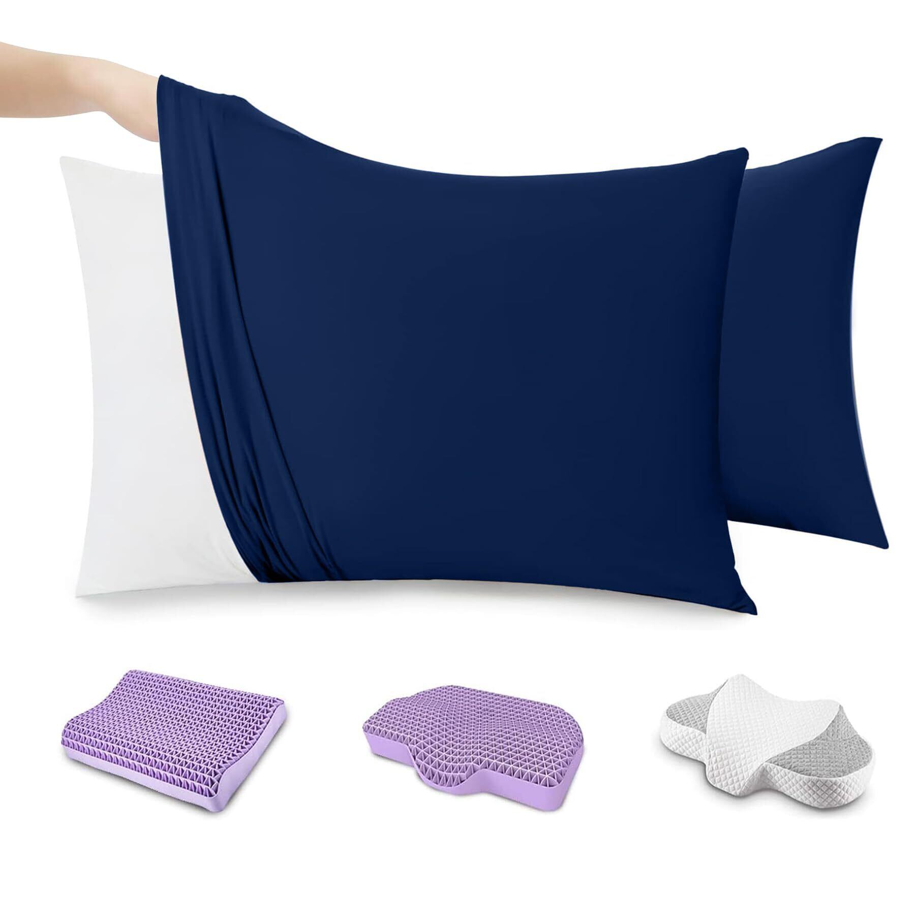 tkone 枕カバー 「様々な枕にピッタリフィット」のびのび枕カバー 2枚組 43x63cm枕適用 封筒式 オールシーズン ピローケース 3Dストレッチ Tシャツ素材 吸汗 速乾 伸縮 丸洗い .ネイビー