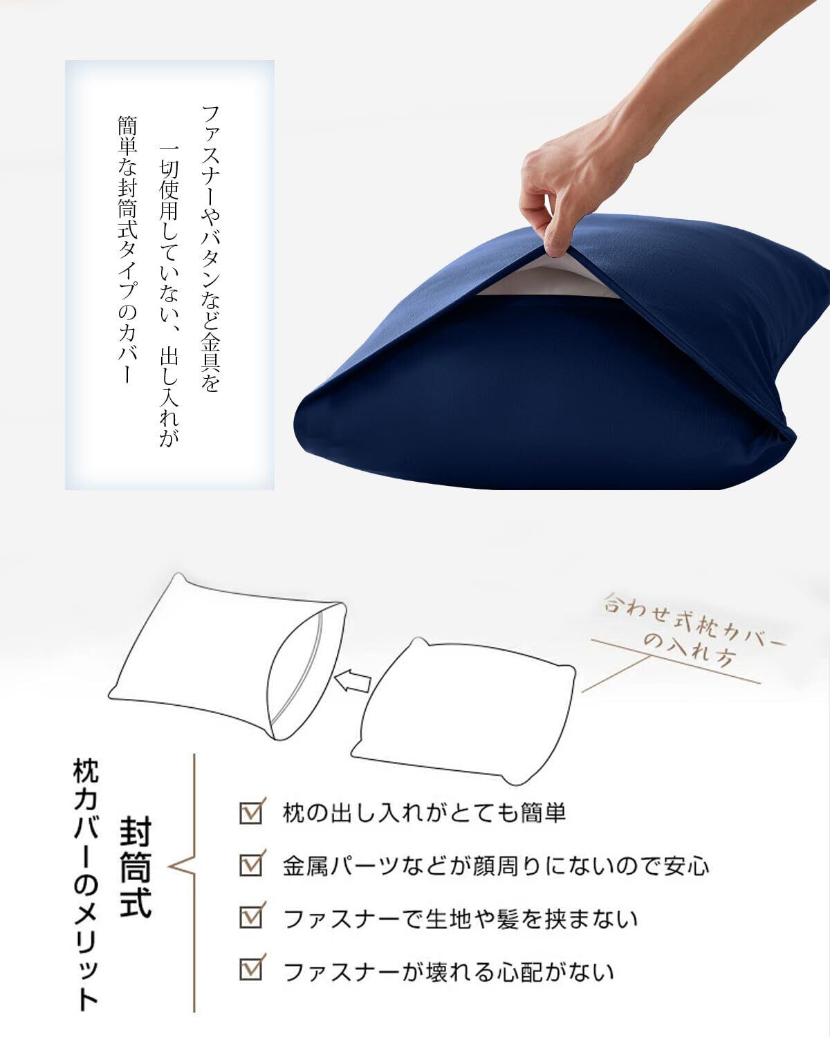 【在庫セール】tkone 枕カバー 「様々な枕にピッタリフィット」のびのび枕カバー 2枚組 43x63cm枕適用 封筒式 オールシーズン ピローケース 3Dストレッチ Tシャツ素材 吸汗 速乾 伸縮 丸洗い .ネイビー