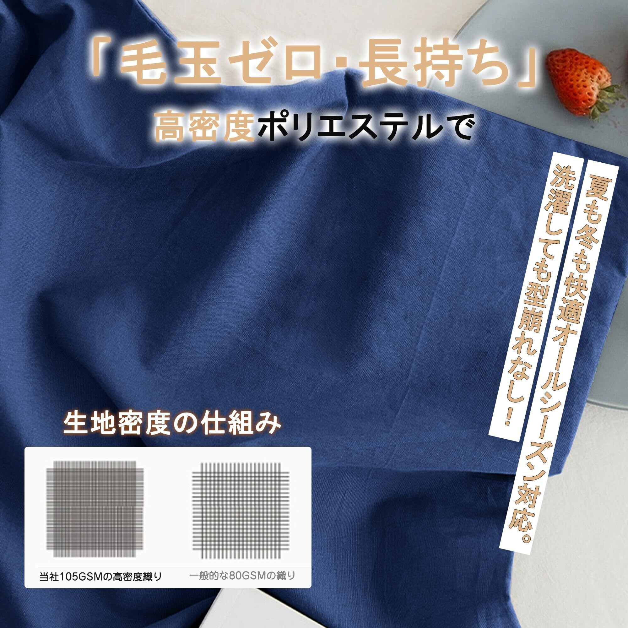 【高密度ポリエステル素材|毛玉なし・静電気軽減】高級ピーチスキン加工で、まるで桃の肌のようななめらかな風合い。高密度ポリエステル100%の特殊配合で、毛玉ができにくく、静電気を抑え、洗濯後も型崩れしにくい耐久性。一般的な枕カバーより厚手でしっかりしているのに、通気性◎で蒸れにくい。