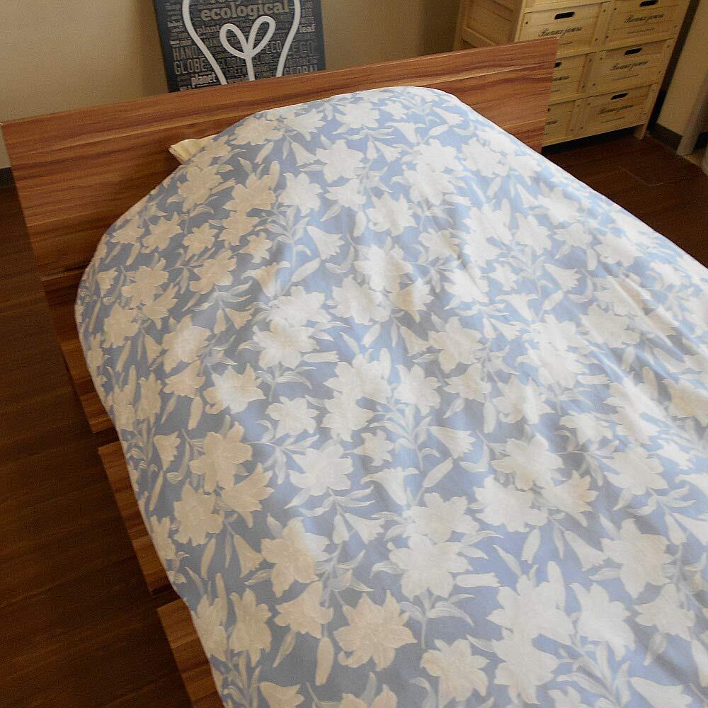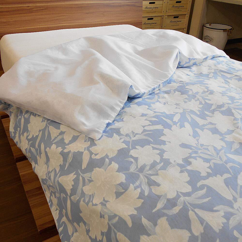120本ガーゼ使用 大判毛布カバー シングルサイズ 花柄 日本製(ブルー)