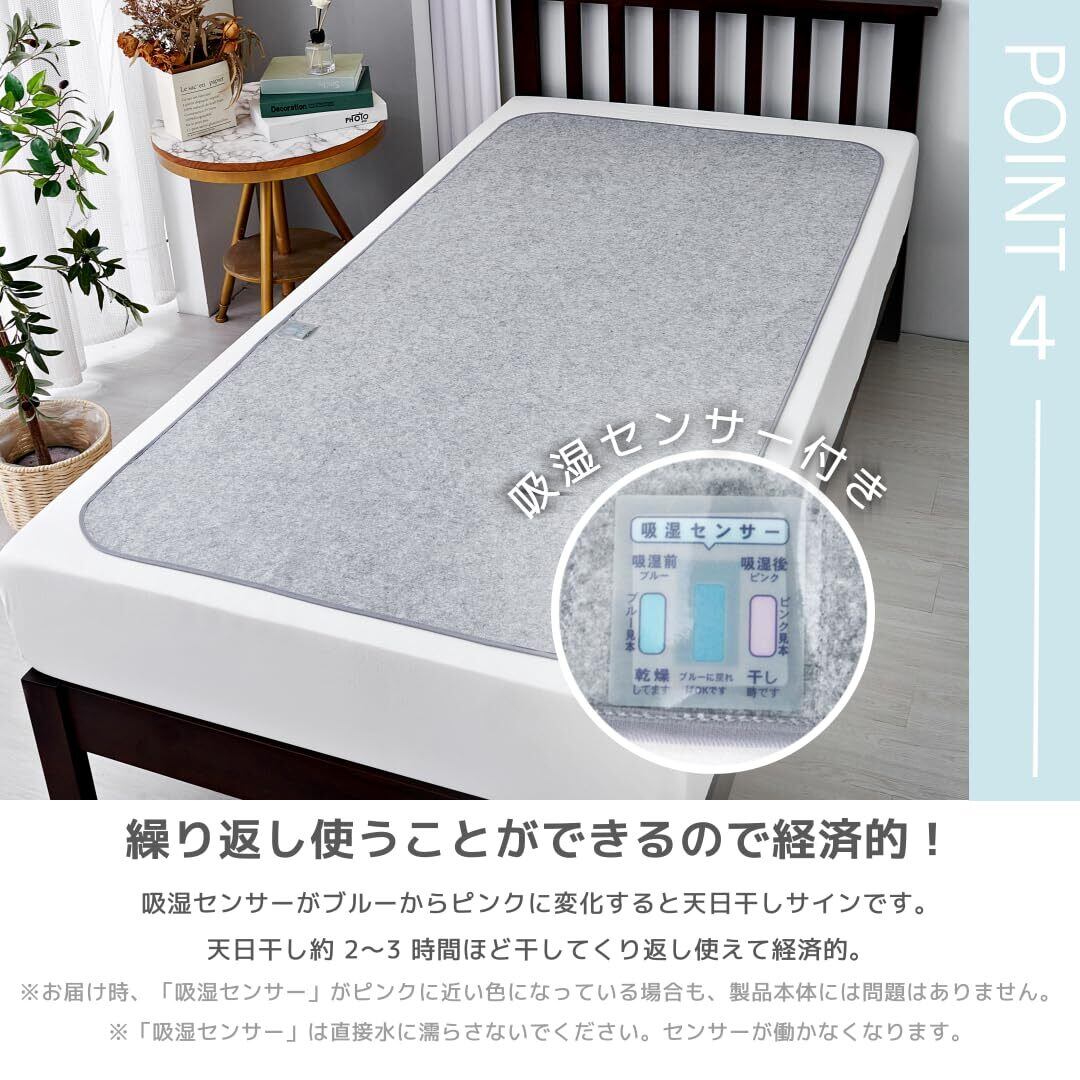 「吸湿性抜群・消臭抗菌」:備長炭、シリカゲルB型で作られた吸湿力抜群の除湿シートで快適に眠ることができます。湿気の多い梅雨、寝汗のかきやすい夏、結露が出やすい冬の、年間通した湿気対策が可能です。また、防ダニ・カビ加工付き。お肌の弱い方でもお使いいただけます。