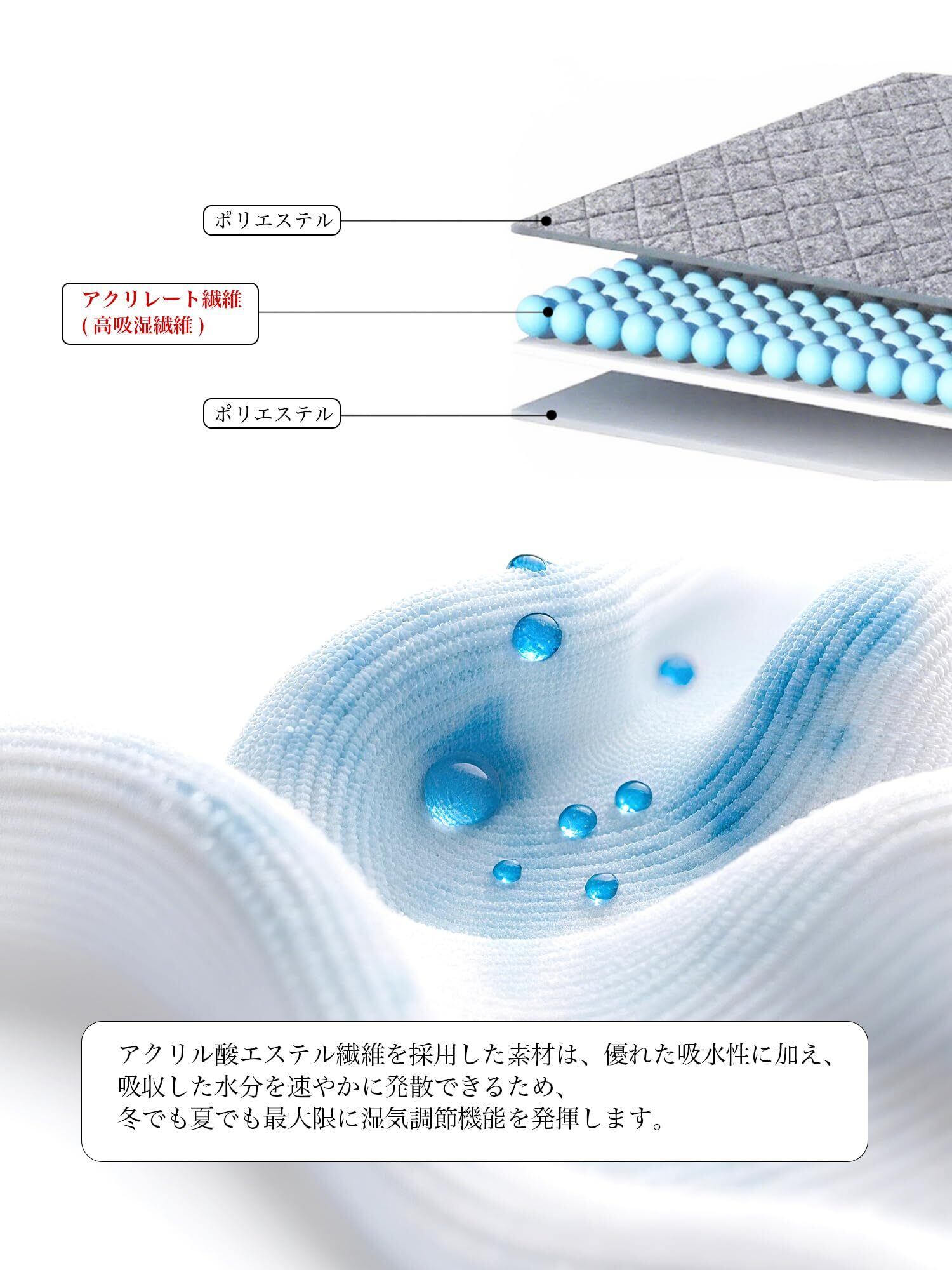 【丸洗いは禁止】本品は特殊吸湿繊維のサンドイッチ構造のため、洗濯機での丸洗いは厳禁です。汚れた場合は、濡れた布で軽く拭くか、汚れた部分のみ手洗いし、洗浄後は天日干ししてください。