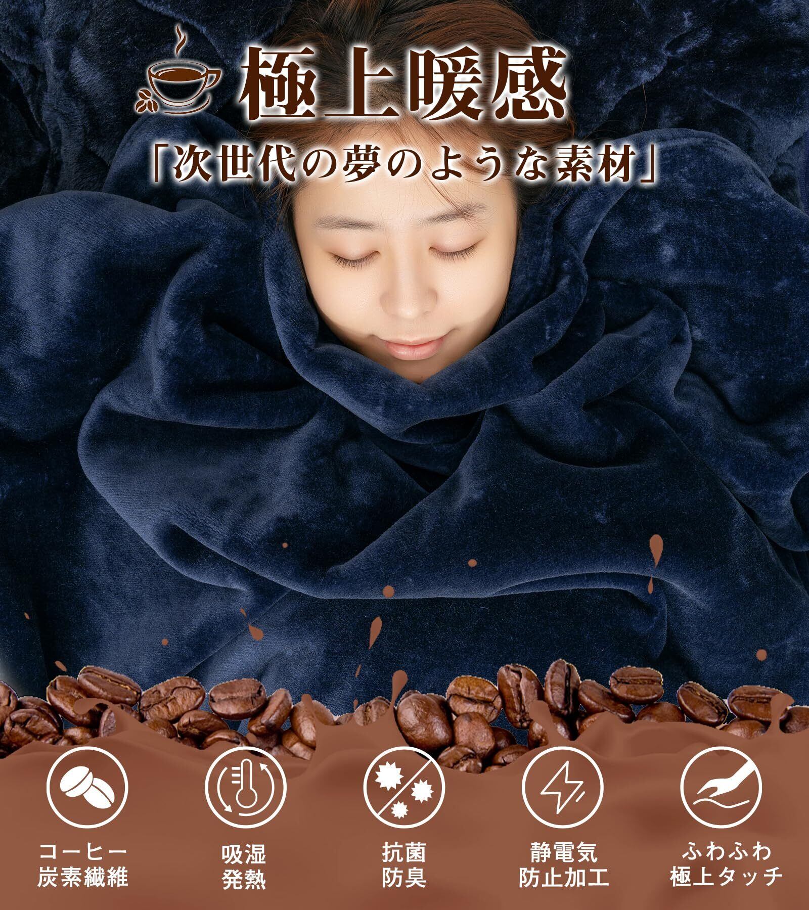 【高機能中わた・W抗菌防臭】コーヒーはにおいを吸収して消臭する天然の消臭剤です。コーヒーを主原料とした繊維はいやなにおいをを抑える効果があり、汗などの臭いが気になりにくいので安心です。素肌に触れるものだからこそ、気持ち良く眠れるように、高機能抗菌防臭防ダニ繊維を採用して、さらに生地にも光触媒抗菌加工を施しています。細菌の増殖を抑制してくれるので、キレイが持続します。