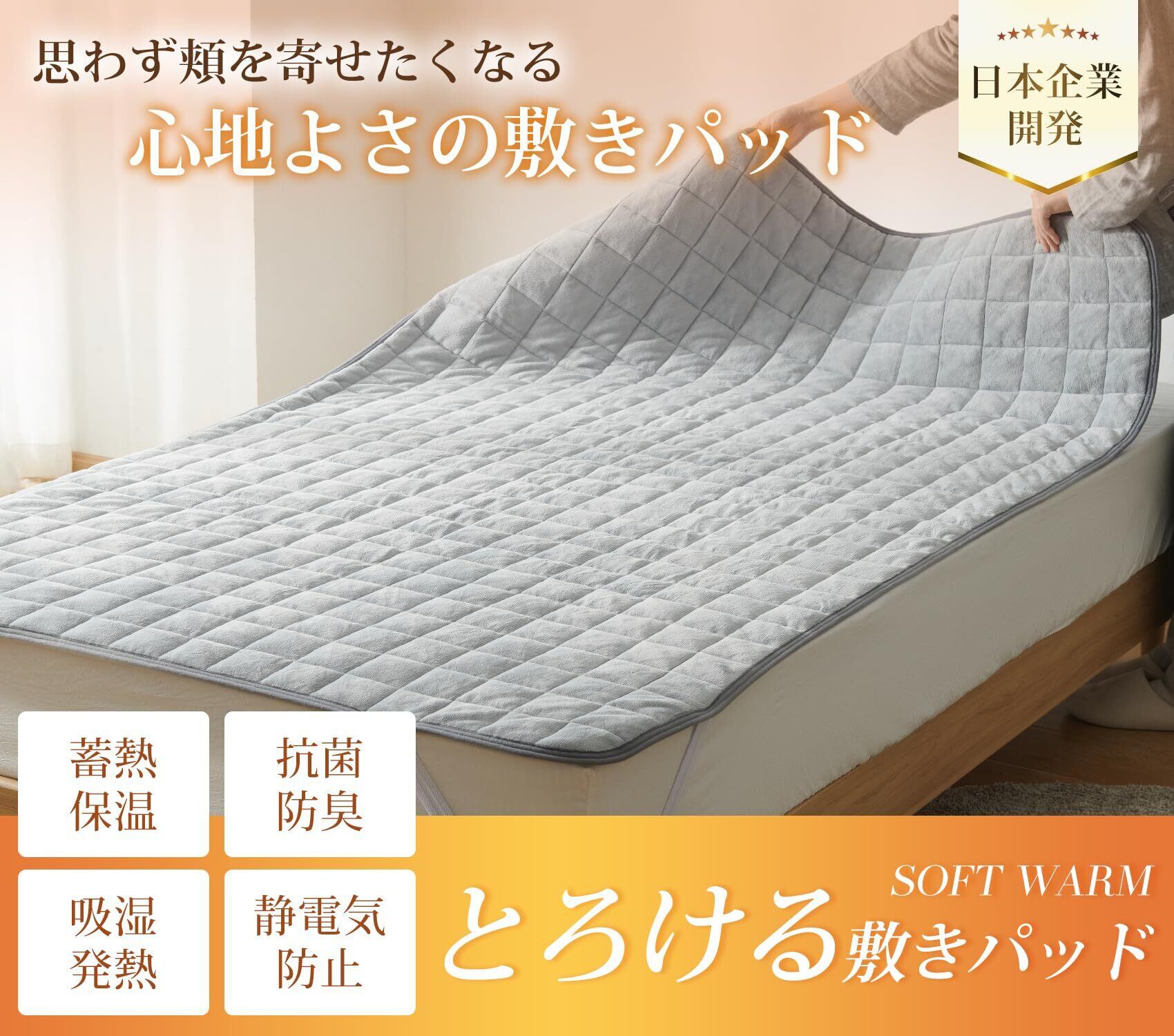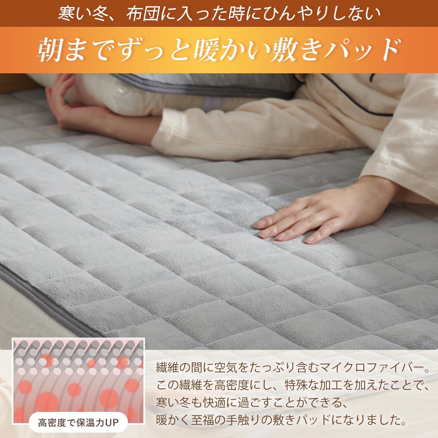 Atokazo あったか 敷きパッド 冬用 秋冬 マイクロファイバー 吸湿発熱 厚手 暖か TEIJIN中綿 抗菌防臭 洗える 洗濯可能 おしゃれ 防寒対策 毛布パッド 敷パット 敷き毛布 ベッドパッド パッドシーツシーツ(シングル・100X200cm, グレー)