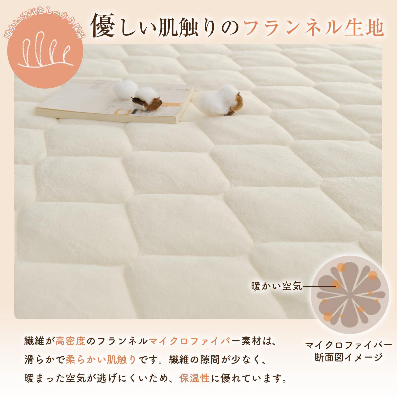 Keusnix 敷きパッド シングル あったか ベッドパッド フランネル 敷パッド 冬用【TEIJIN マイティトップ中綿使用】しきぱっと 敷パット オールシーズン 抗菌・防臭・防ダニ加工 静電気抑制 ふわふわ 洗える ゴム付き マットレスパッド ベッドシーツ(100X200cm アイボリー)