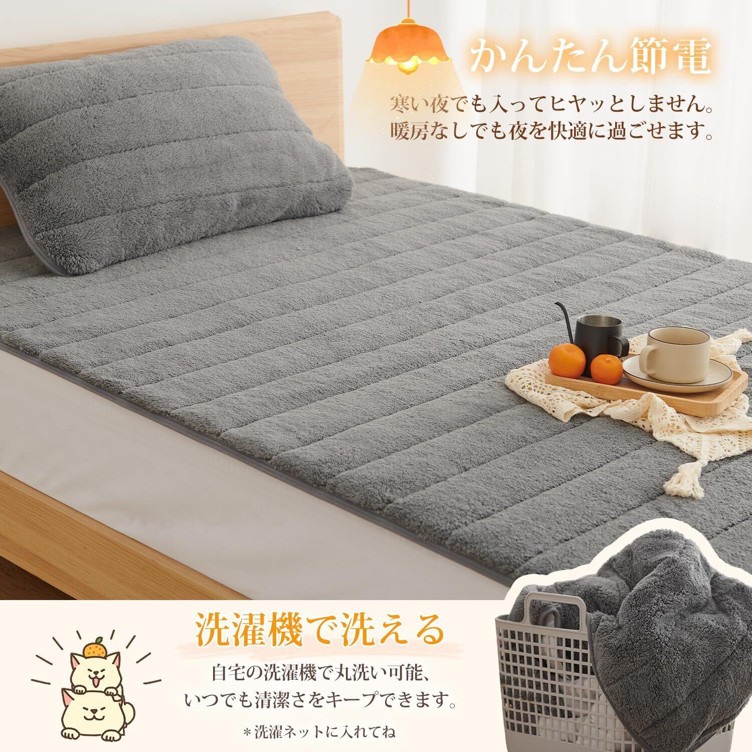 クモリ(Kumori) 敷きパッド あったか 冬 もこもこ マイクロファイバー ふんわり ベッドパッド 洗える 敷き毛布 TEIJIN(帝人)中綿使用 抗菌 防臭 丸洗いOK 静電気防止 敷パッド (シングル・100X200cm グレー)