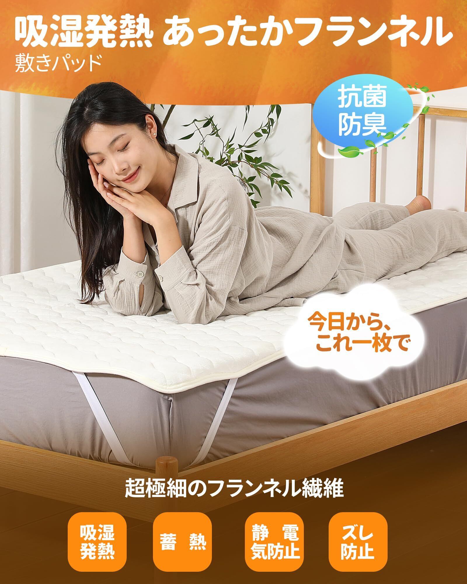 【特価セール】【SUNSEIKATU】敷きパッド 冬 暖かい シングル セミダブル ダブル秋冬 あったか しきぱっと パッドシーツ吸湿発熱フランネル生地 静電気抑制 TEIJIN(帝人)抗菌防臭防ダニ四隅ゴム付き毛布パッド ベッドパッド ベッドシーツ ベッドマット マットレスパッド (シングル100x200㎝ アイボリー 1枚)