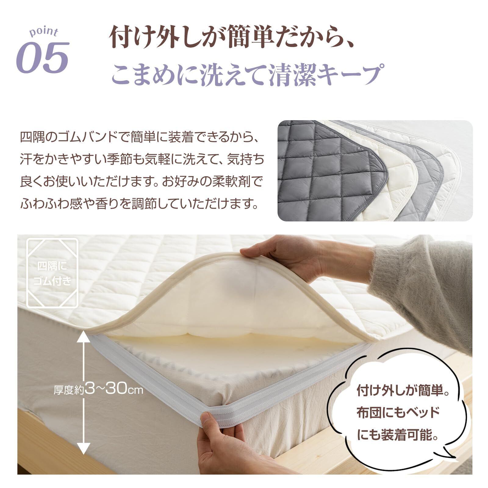 特徴 オールシーズン使用可能, 中わた増量(中棉約160g/㎡), 抗菌防臭, 洗える, 装着簡単