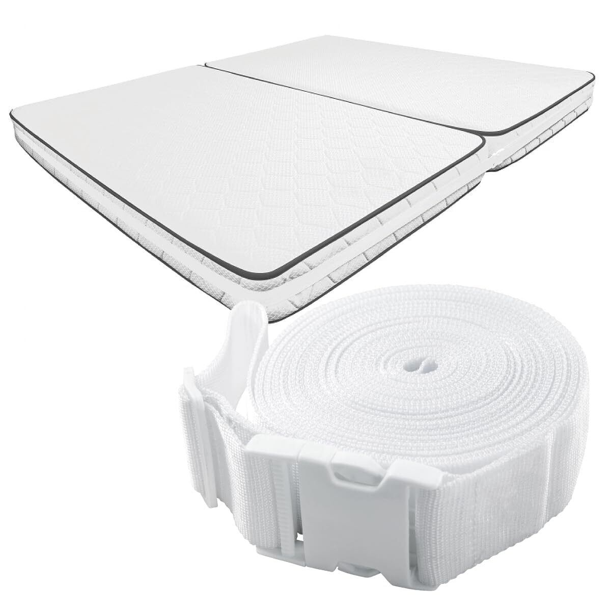【2枚のマットレスを並べて使っている方に最適なマットレスバンド】「マットレスがズレて離れる」「2枚のマットレスの真ん中の隙間に物が落ちる」マットレスを並べて利用していると、マットレスの間に隙間が開いていき、その隙間にリモコンやスマホが落ちてしまって拾うのが大変だったり、家族やペットの転落も心配になります。──そんなお悩みを解消するのが、本品マットレスバンドです。お客様からは「こんなに便利な物があると知っていれば、もっと早く買えば良かった」と嬉しいお声を沢山いただいています。工具不要で、マットレスの外周にぐるりと巻いて締めるだけの簡単装着で、2枚のマットレスを固定し、隙間を無くすことができます。「大きいマットレスは取り扱いが大変」というご家庭でも、2枚のマットレスを一体化すれば、キングサイズ級の広々快適な寝心地に。家族全員の睡眠を支える「安全性」と「快適性」を両立できるマットレスバンドは、カップル・夫婦・家族でのご使用にぴったりで、使い続けるほど便利さを実感できる長く安心して使える1本です。