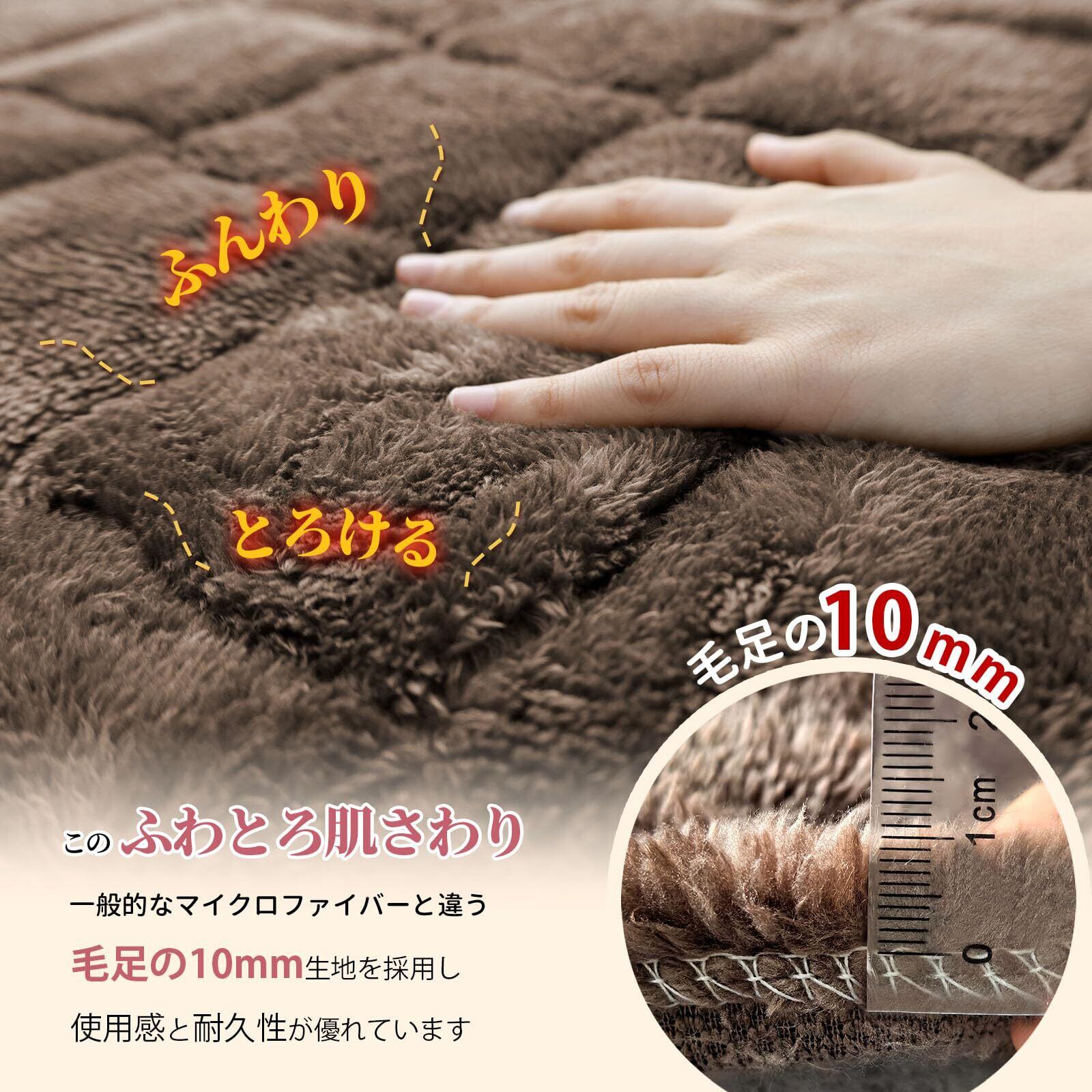 【接触温感・ふわとろ肌触り】Q-maxとは人の皮膚からものへの熱の移動を数値化したものです、値が小さい程暖かく感じます。の敷きパッドの生地はQ-MAX 0.095で、接触瞬間にあったか、ぬくぬく。しきぱっとの糸長さ8mmあり、密度も抜群、ふわふわで柔らかい、暖かい空気をたくさん蓄えます。