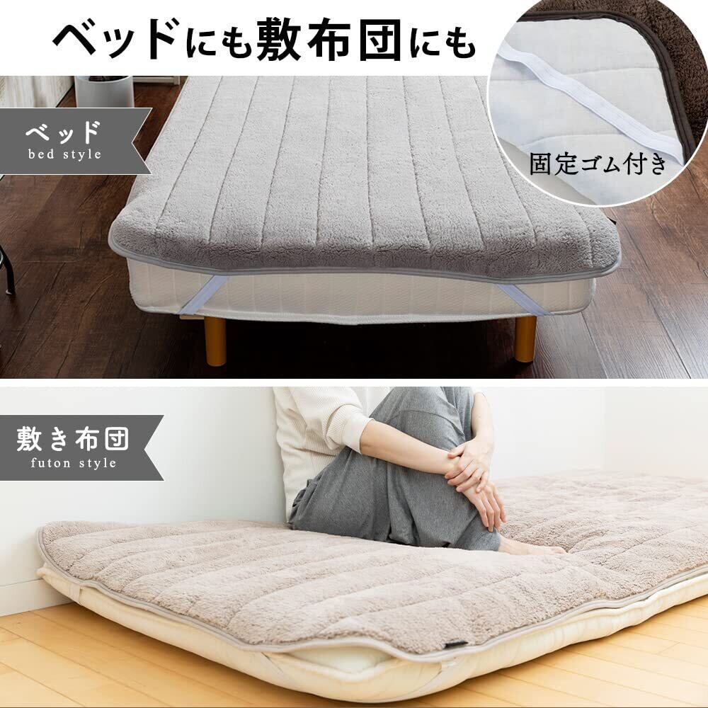 アイリスプラザ(IRIS PLAZA) 敷きパッド あったか 冬用 丸洗いOK 極細マイクロミンクファー 約10mm ロングファー 全周ゴム仕様 [Blankoシリーズ] シルバーグレー シングル