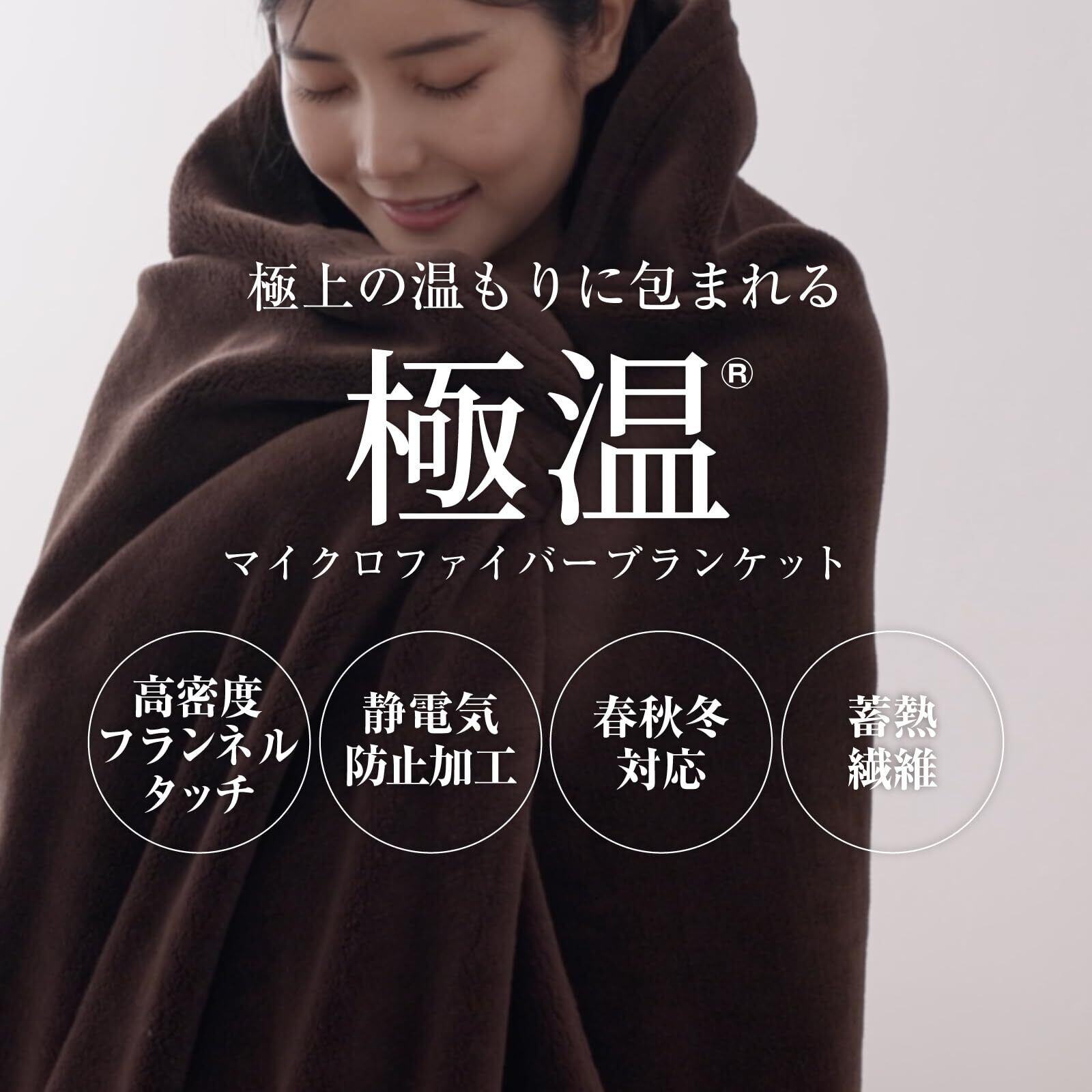 【軽いのに暖かい!】極温毛布は、従来のマイクロファイバー製品と比較するとより暖かい毛布となっております。また、当店の毛布は非常に軽いうえに超極細繊維がたっぷりと詰まったプレミアムフランネル生地が使用されており、身体を包み込むような暖かさを実感していただけます。
