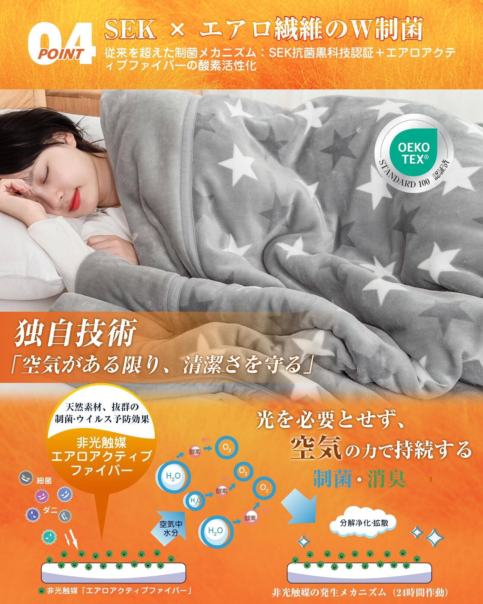 【超高密度フランネル】超高密度フランネル、厚みとグラム数を増やし、空気をたっぷり閉じ込めて、速暖と持続暖感を実現し、寒い冬に負けない!従来品と比べ保温効率が約20%向上し、室温20℃でも体感温度+2〜3℃ を実感できます。お毛布に入った瞬間からぽかぽか。フランネルのグラム数を増やすことで、保温と蓄熱の効果を長時間持続させ、一晩中より長く快適な睡眠を提供します。
