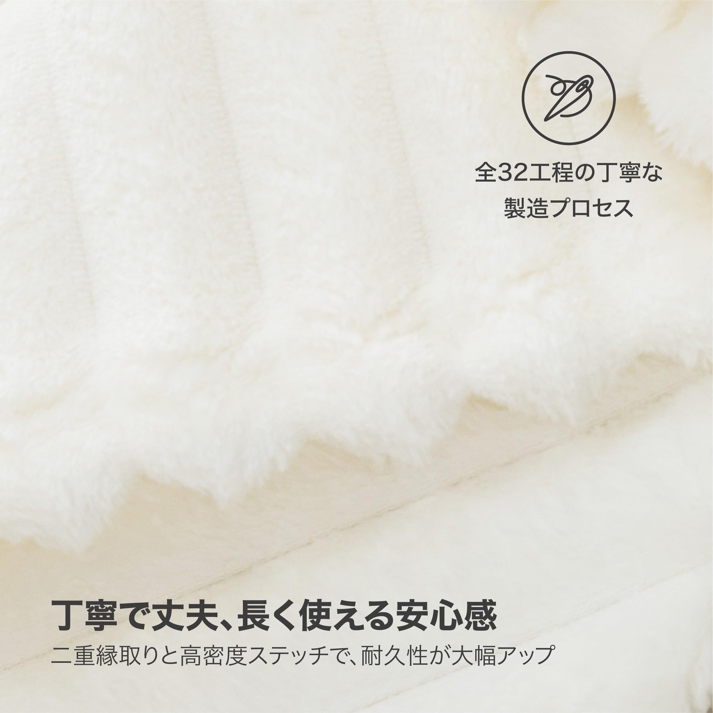 すばやく暖かく、しかもムレにくい快適構造:立体ストライプデザインは見た目の美しさだけでなく、独自構造によって熱を効率よく閉じ込めつつ、空気をスムーズに循環させることで、わずか10秒でぽかぽか感を実感できます。暖かいのにムレにくく快適。秋には軽やかなブランケットとして1枚で使用でき、冬には掛け布団と重ねてさらに保温性アップ。しっかりと包み込むようなあたたかさをお届けします。