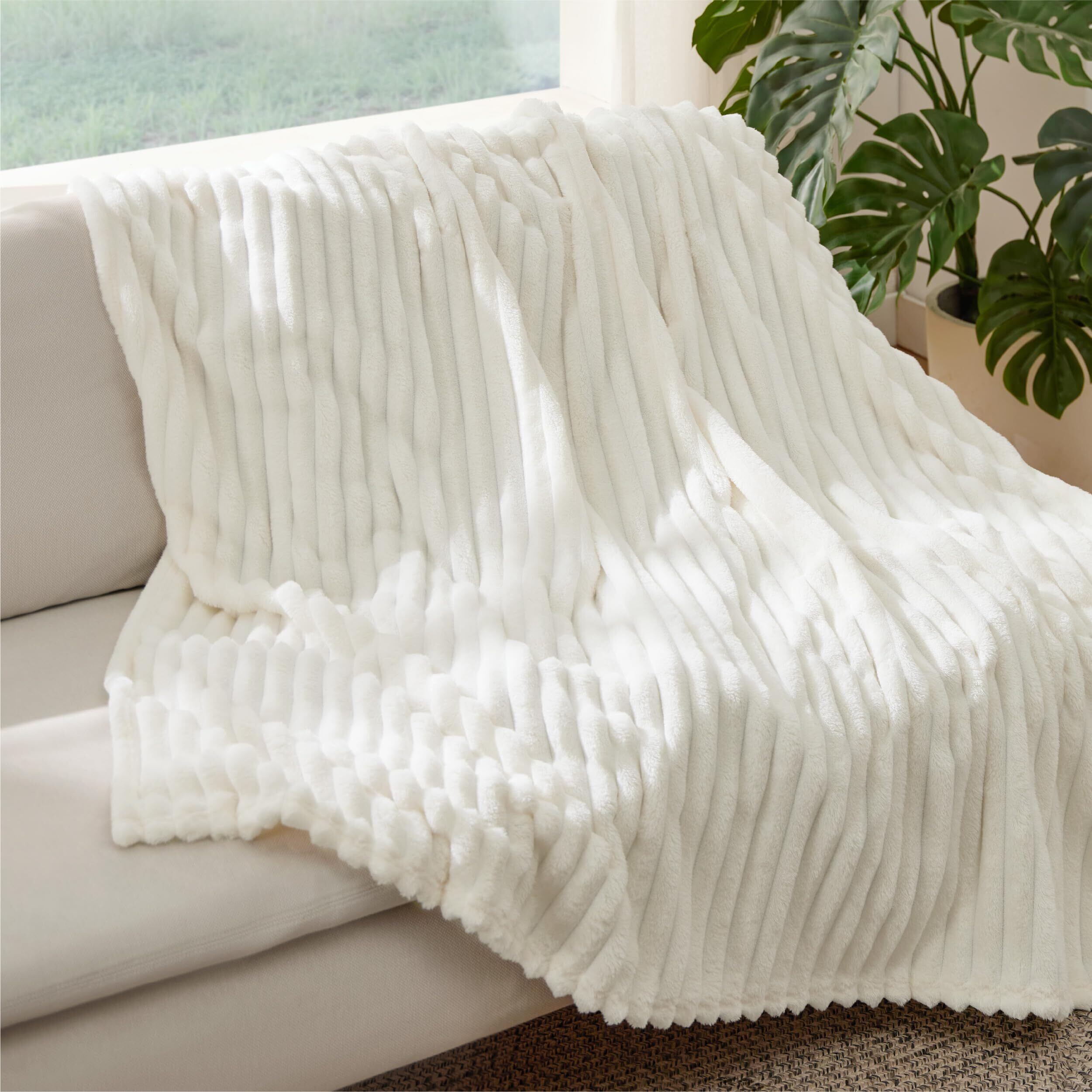 Bedsure 毛布 シングル ふわとろ 冬用 ブランケット おしゃれ ふわふわもうふ もこもこ 柔らかく肌触り 軽量 掛け毛布 洗える 寒さ対策 軽い 暖かい(150x200,ホワイト)