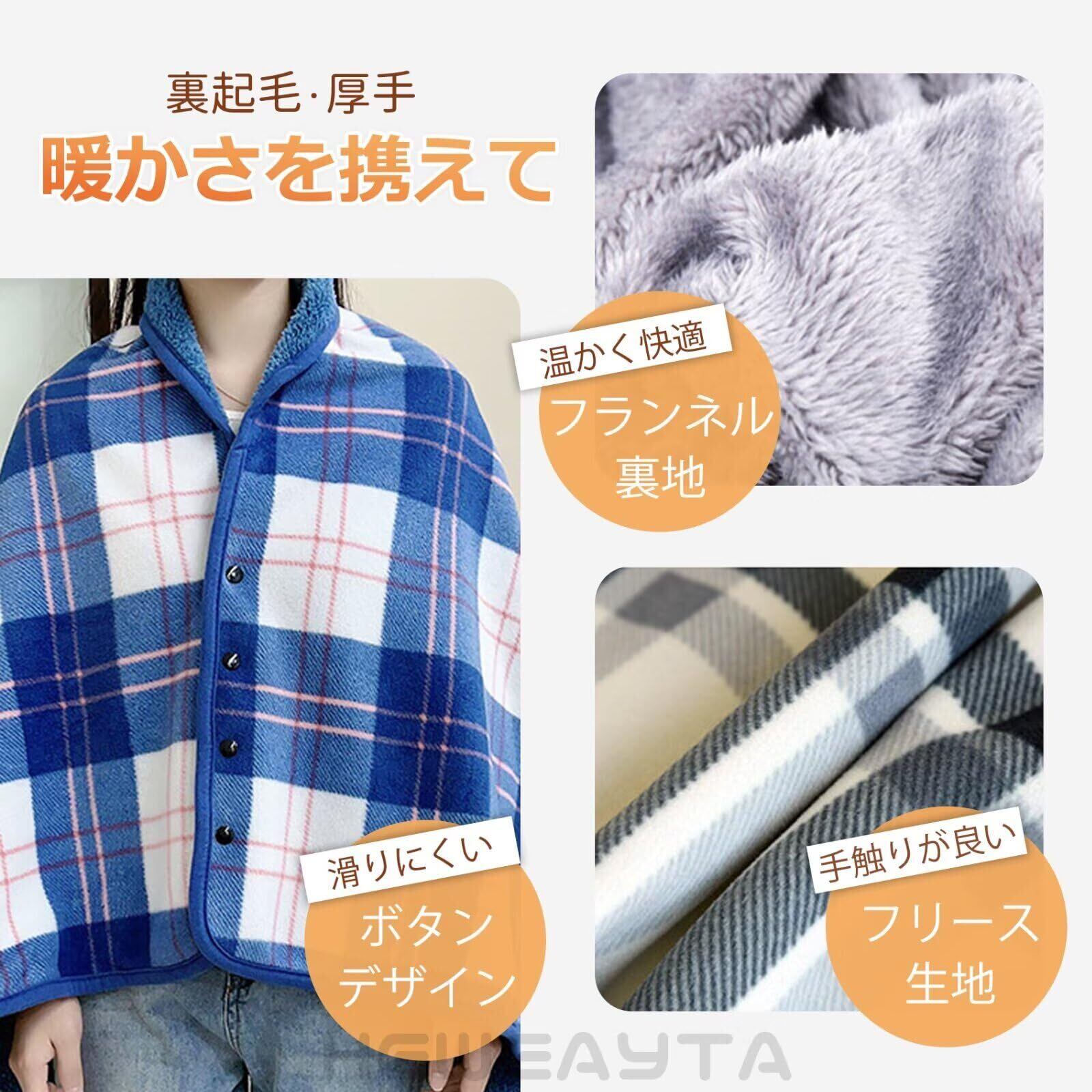 [HEWEAYTA] ブランケット 着る毛布 チェック柄 ボタン付き - ハーフケット 裏起毛 もこもこ 厚手 肩掛け ひざ掛け 防寒 保温 寒さ対策