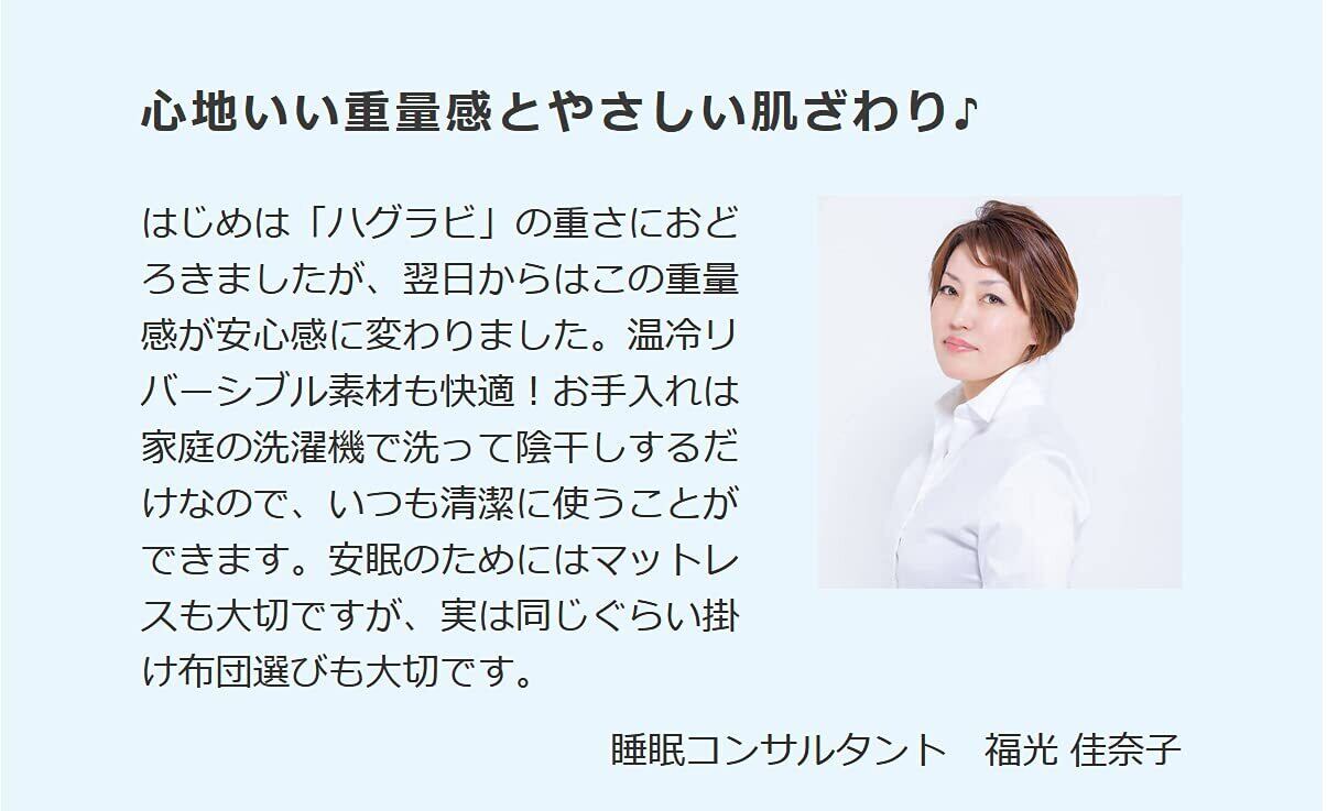 【睡眠投資していますか?】人生の約1/3は睡眠時間と言われています。快適な睡眠環境を整えることは、正に人生を整えることといっても良いのではないでしょうか。ハグラビのウェイトブランケット(加重ブランケット)は毎日気持ちの良い睡眠環境をご提供します。