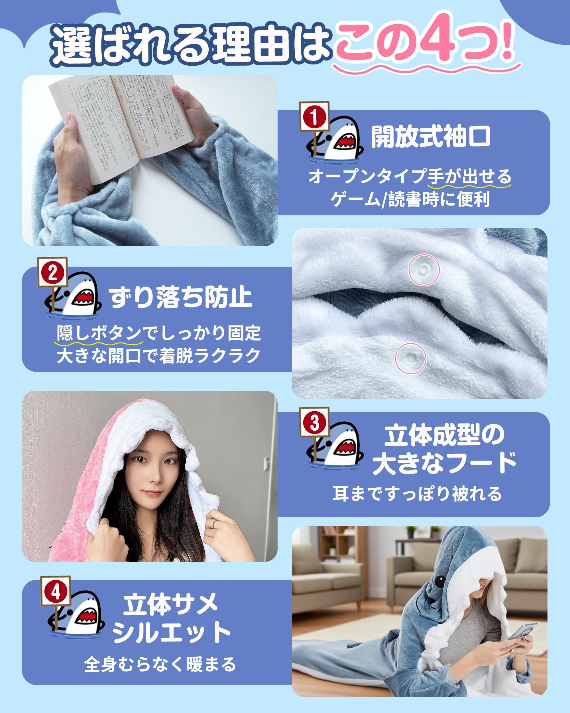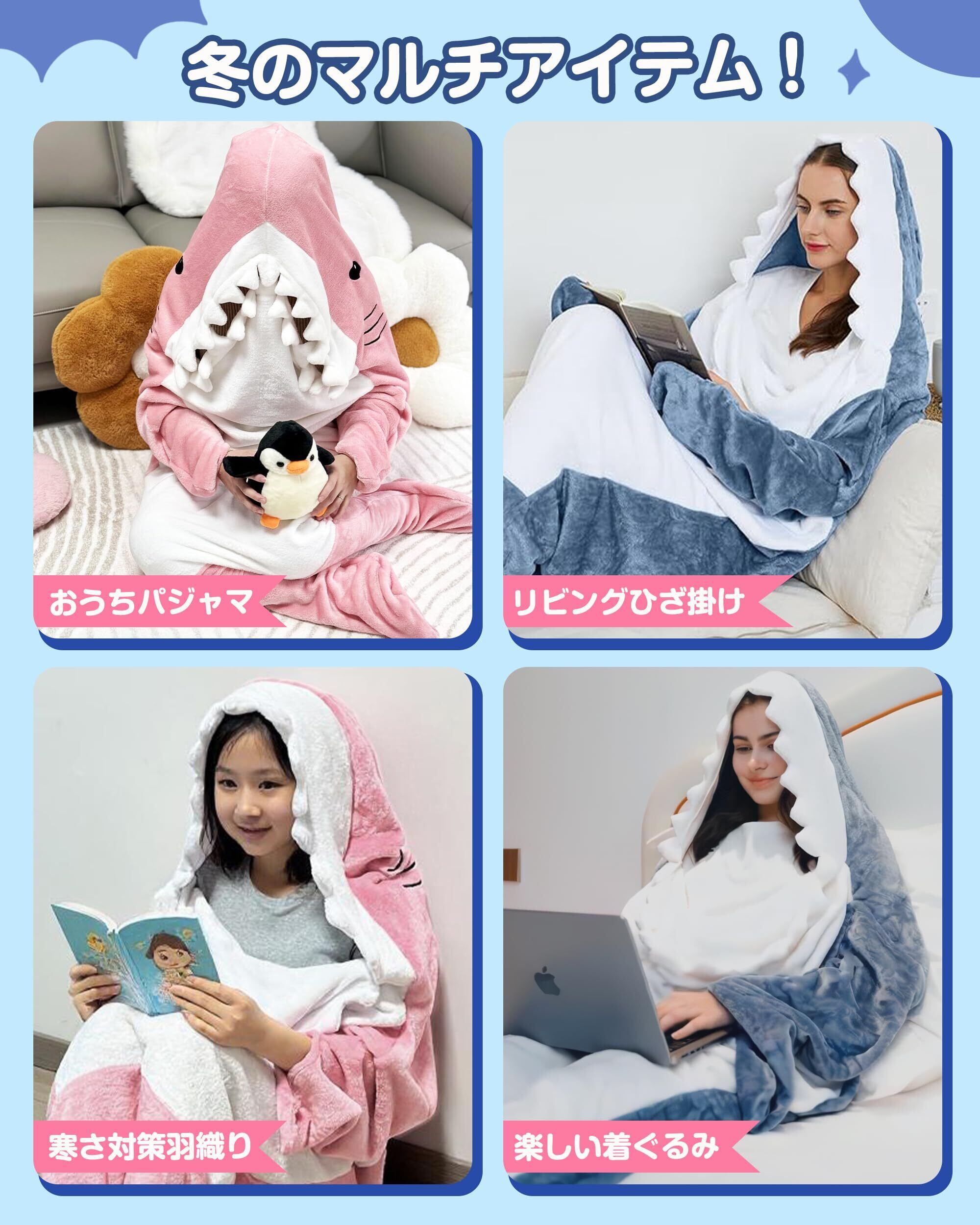 [GOKEI] サメ寝袋 寝袋 着ぐるみ パジャマ あたたかい フランネル サメブランケット サメ 着る毛布 ルームウェア きぐるみ 子供用 大人用 かわいい 冬 秋 ふわふわ パーティー おしゃれ 可愛い 暖かい 柔らかい 毛布