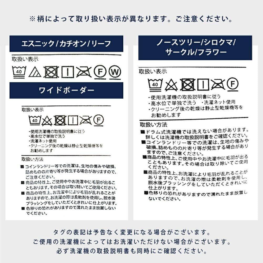 【ご購入前にご確認ください】[ヘム部分について]一部デザインによってはヘム部分から下の柄が透け、汚れに見える場合があります。これは汚れや異物ではないので、予めご了承くださいませ。 【四隅の糸処理に関して】四隅のヘム部分から糸が飛び出したような状態になってい場合がございますが、こちらは糸止めの処理で発生するもので、不備ではございません。切り取るとほつれの原因となる場合があるため、切断等はしないでください。