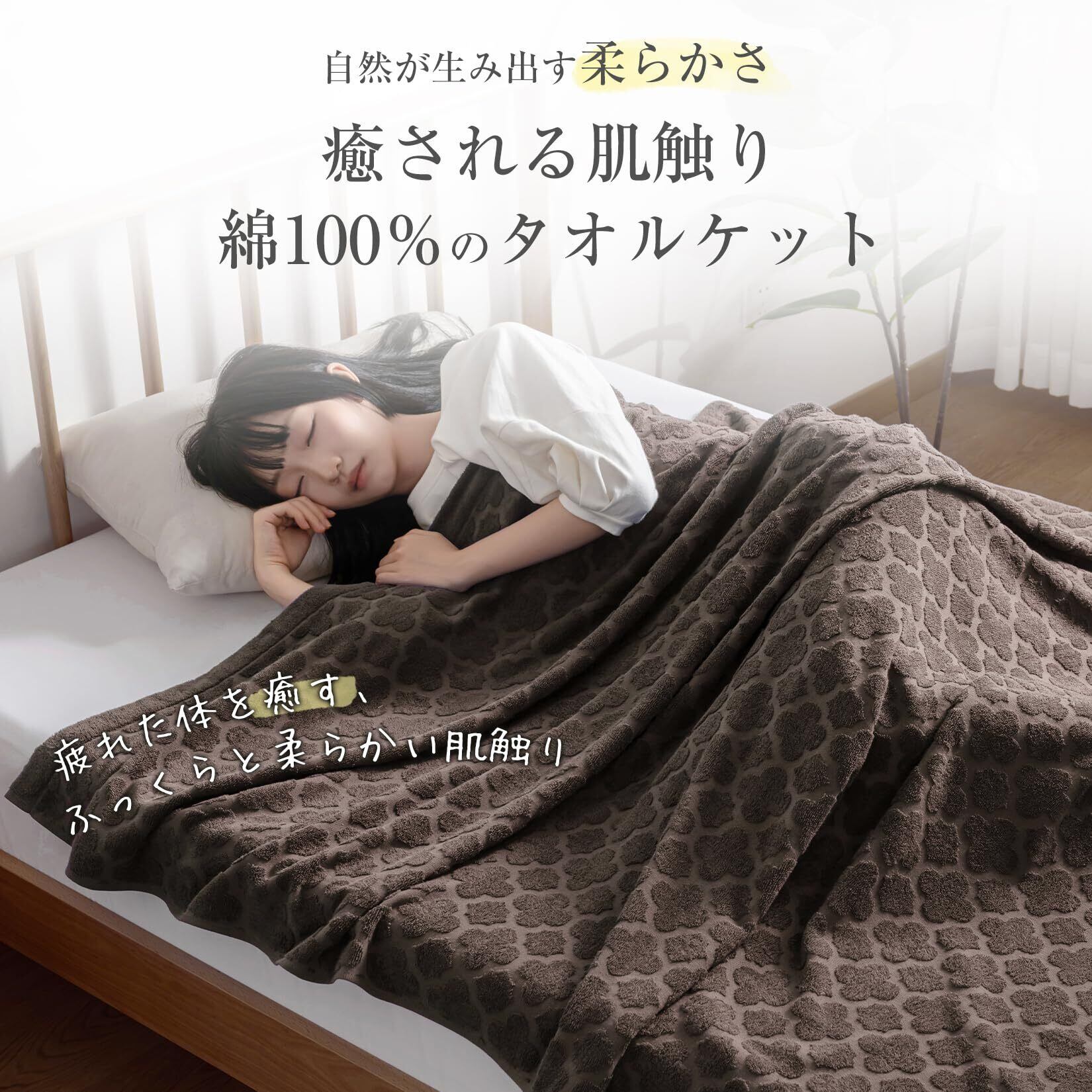 【優れた吸湿・通気性】両面ともに天然綿100%を丁寧に織り上げており、優れた肌触りはもちろん、吸水性や通気性にも優れています。140×200cmと大判ながらも気軽に洗濯できるのは、たくさん汗をかく春夏秋や、汗っかきの方にも嬉しいポイントです。