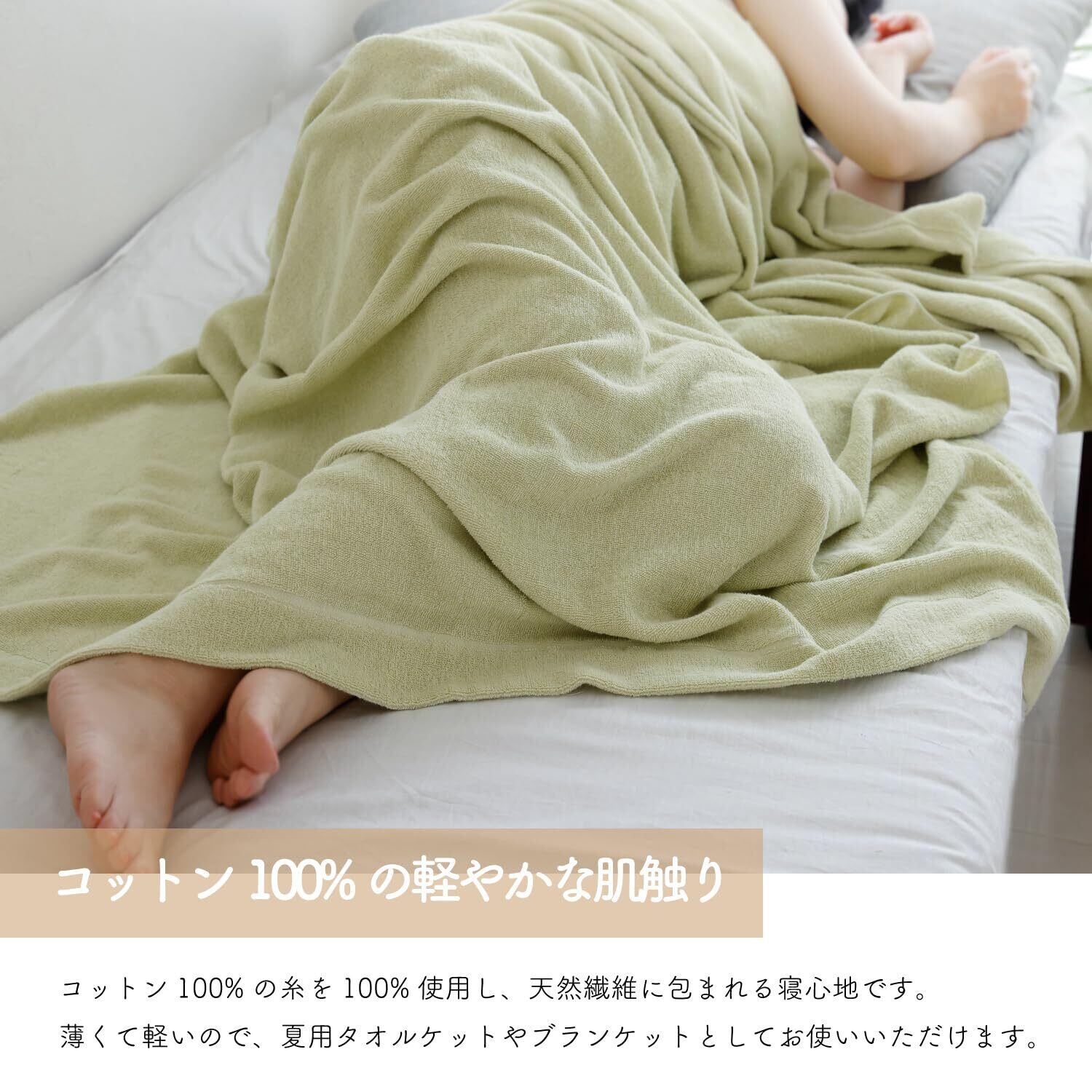 【コットン100%の軽やかな肌触り】コットン100%の糸を100%使用し、天然繊維に包まれる寝心地です。薄くて軽いので、夏用タオルケットやブランケットとしてお使いいただけます。