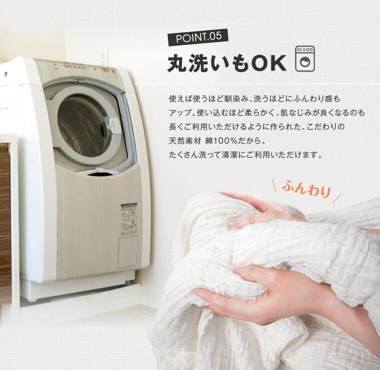 【天然素材で気持ちい】心地よい肌触りの綿100%です。ふっくら、やわらか、な触り心地は、一度体験すると手放せません。