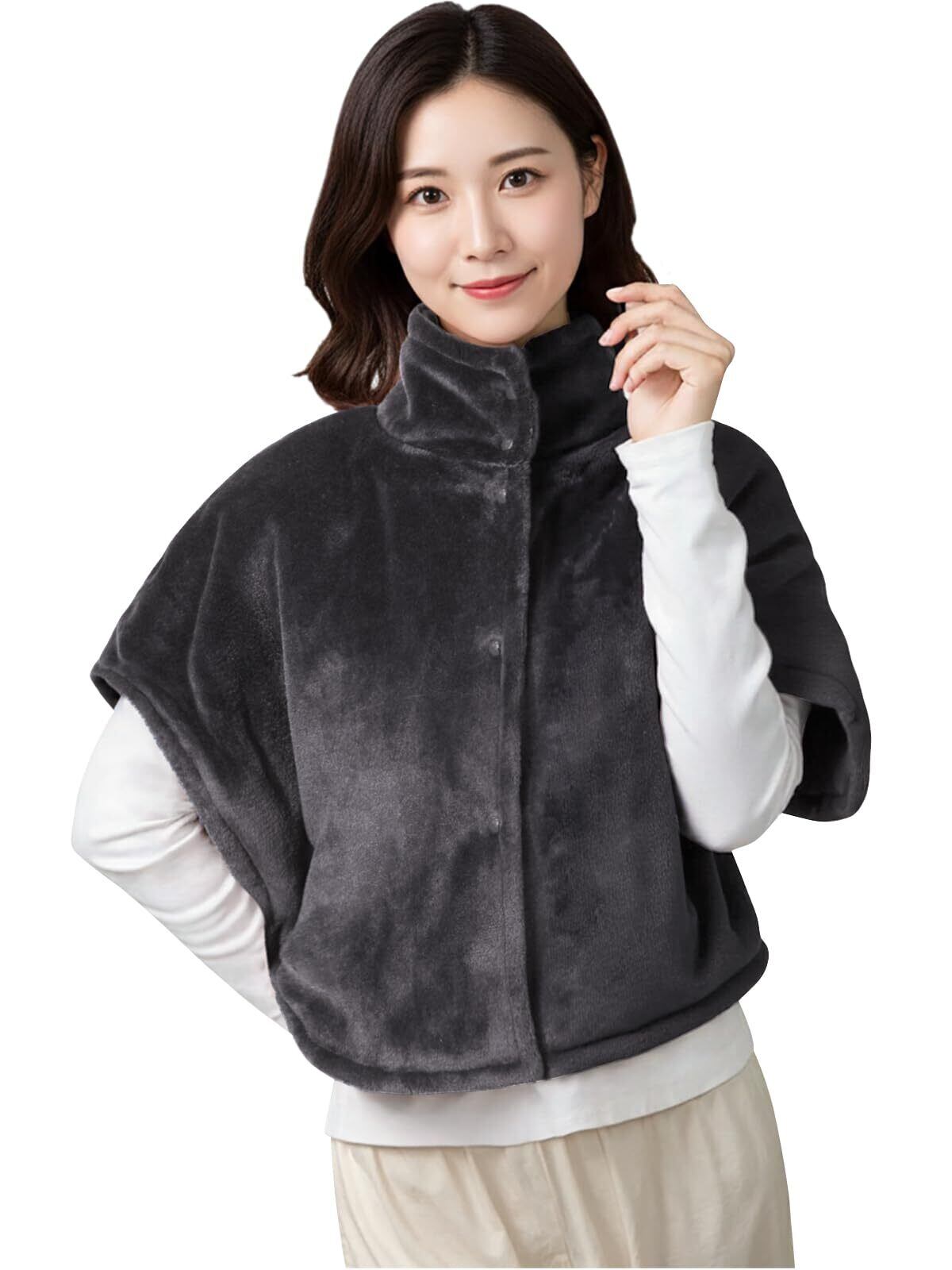 [Sumolux] 肩当て 肩掛け 着る毛布 ルームウェア ポンチョ ひざ掛け ブランケット オフィス ベスト 部屋着 極暖 防寒 ハイネック 顔まですっぽりあったかケープ