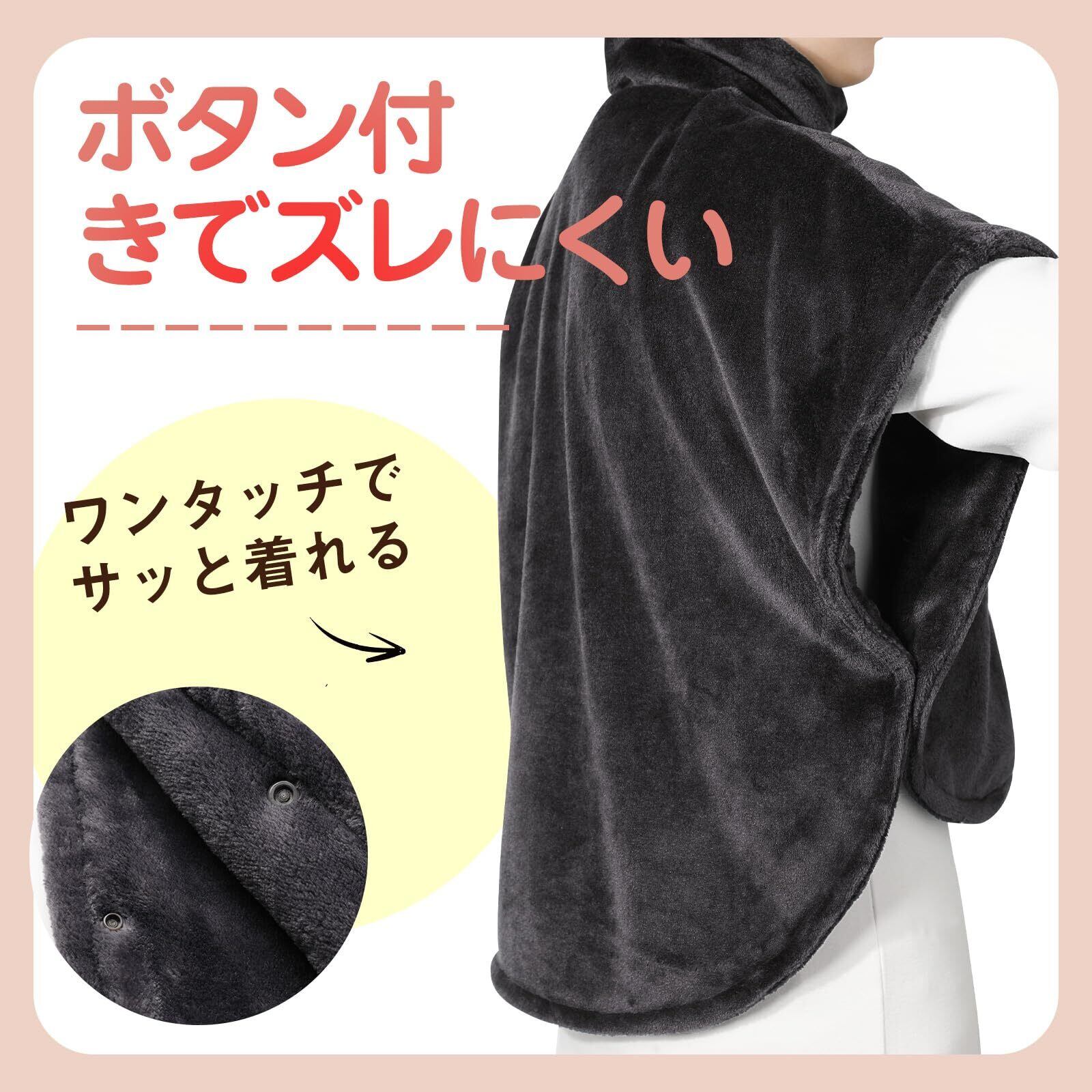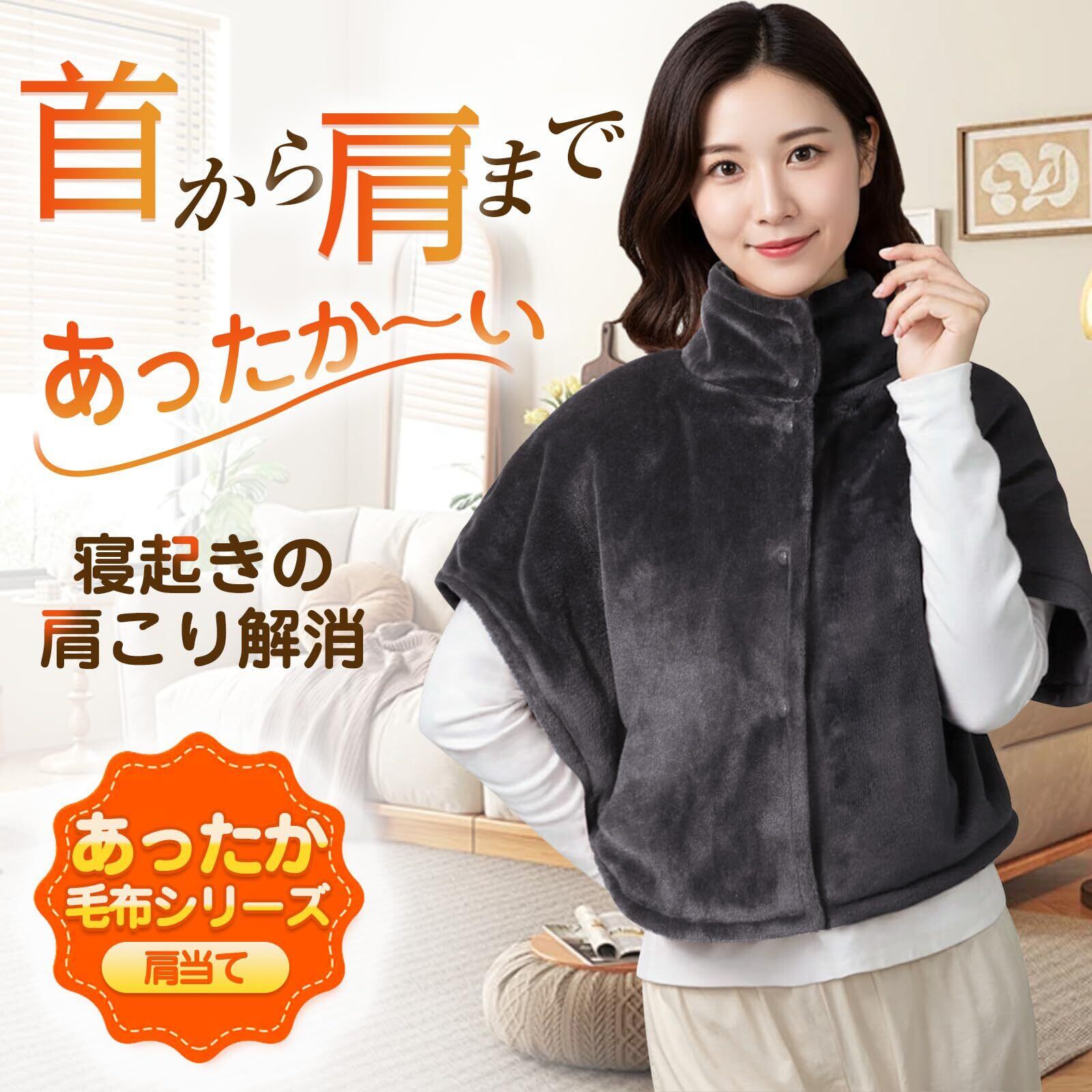 【軽くて暖かい肩当て】寒い季節に大活躍の、あったかポンチョケープが登場!軽くて暖かく、肩から羽織るだけでポカポカ快適。ボタンの前開きスタイルなので全開も可能です。冷える首から肩回りを重点的にあたたかく寒いときにあるとうれしいプラスワンアイテムです。