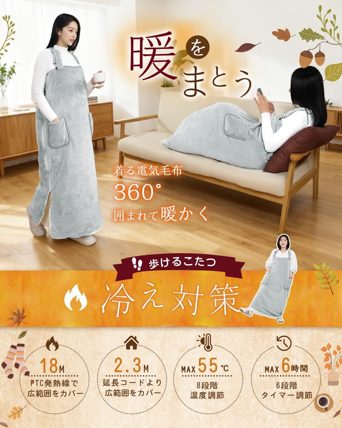 【秋冬の新定番!業界最新360°立体発熱電気毛布】2025年業界最新360°立体発熱電気毛布登場!市販の9点発熱式電気毛布とは異なり、この電気毛布は180cmのPTC発熱線を採用し、360°立体発熱を実現、より広い範囲をカバーします。スイッチONするだけですぐにポカポ、カコタツにくるまれているような気分になれる。ひざに掛けたり、肩に羽織ったり、冷えやすい足元に覆ったり、腰を巻いたり、使い方色々な掛け敷き両用ブランケット。室内はもちろん、冬キャンプや車中泊、アウトドアでも活躍する速暖タイプの掛け敷き兼用毛布です。また、消費電力が抑えられているため、省エネ効果も期待できます。安全性も高く、寒い季節に安心して長時間使用できる電熱毛布です。