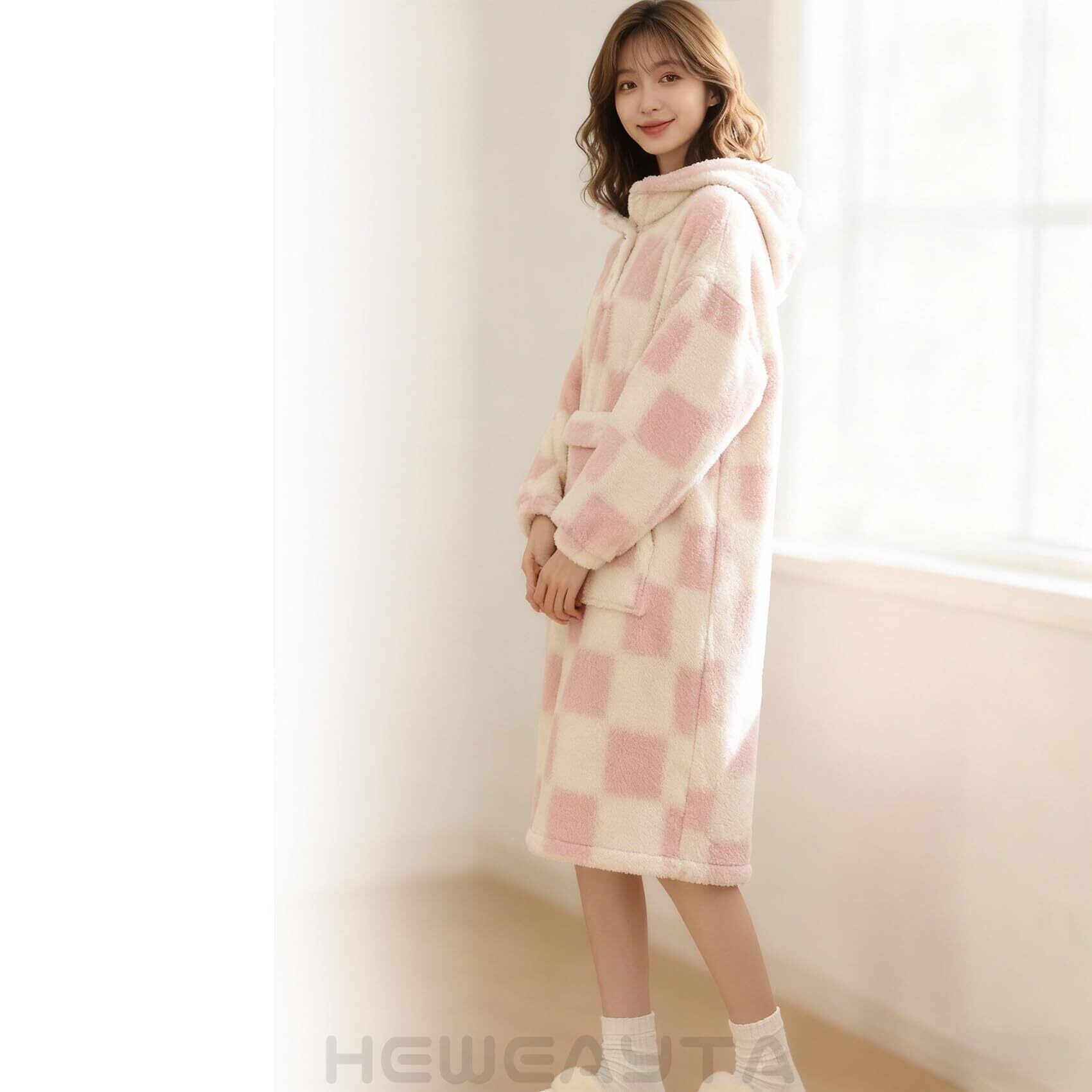 【特価商品】[HEWEAYTA] 着る毛布 レディース 長袖 チェック柄 - 着るブランケット フード付き 厚手 防寒 かい巻き ロング ポケット付き 保温 暖かい