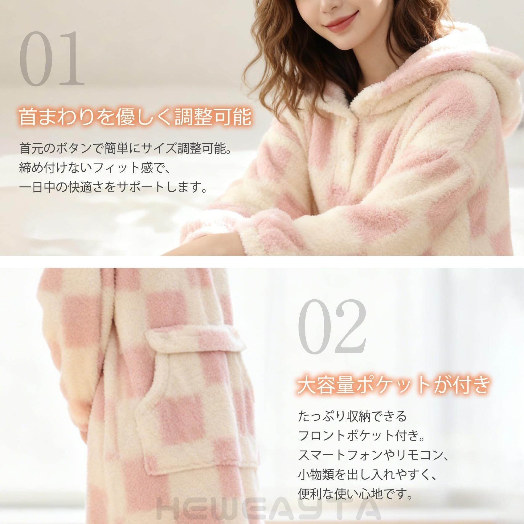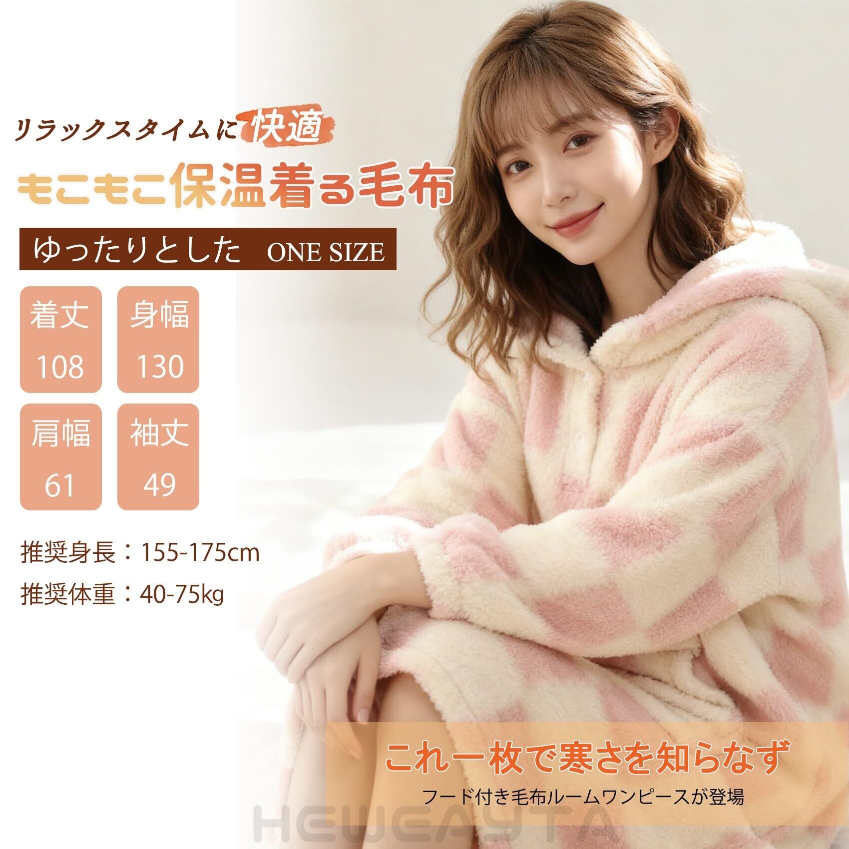 [HEWEAYTA] 着る毛布 レディース 長袖 チェック柄 - 着るブランケット フード付き 厚手 防寒 かい巻き ロング ポケット付き 保温 暖かい