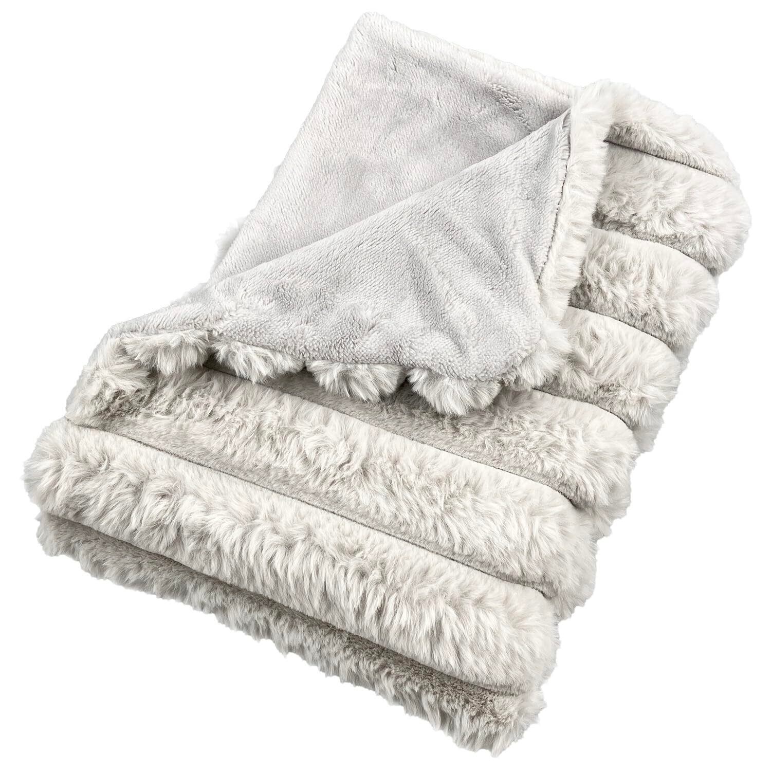 究極の肌触り!「ふわとろ」ラビットファー&「もこもこ」シープボアの二層構造で極上の暖かさ 冬の寒さ対策に最適な、表地はふわとろで有名なラビットファー調素材、裏地は暖かさ抜群のもこもこシープボアを使用した厚手のブランケットです。 まるで本物の毛皮のような柔らかい肌触りと、贅沢なボリューム感が特長。 寒い季節も快適に過ごせる、最高の心地よさを提供します。