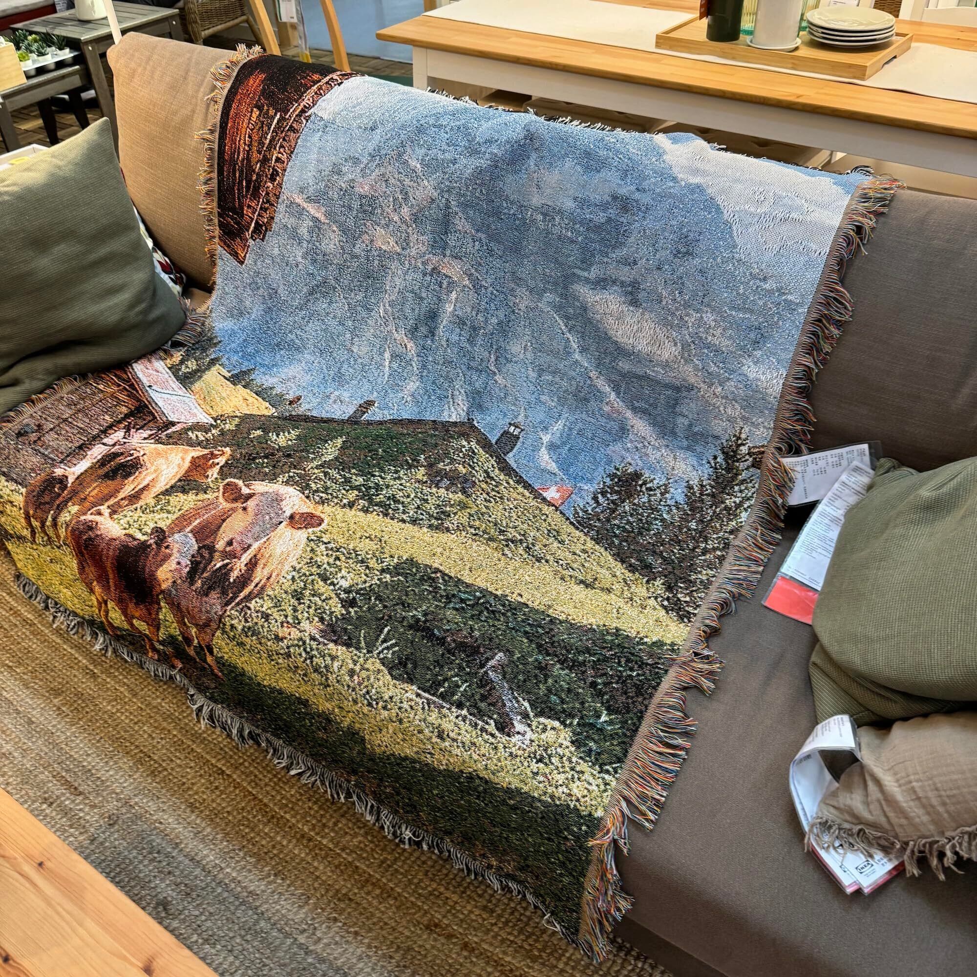 【在庫セール】織りで表現 アルプス Alps ブランケット,マルチカバー ,おしゃれ 風景,壁に掛けてインテリア , ベッドカバー130X160cm