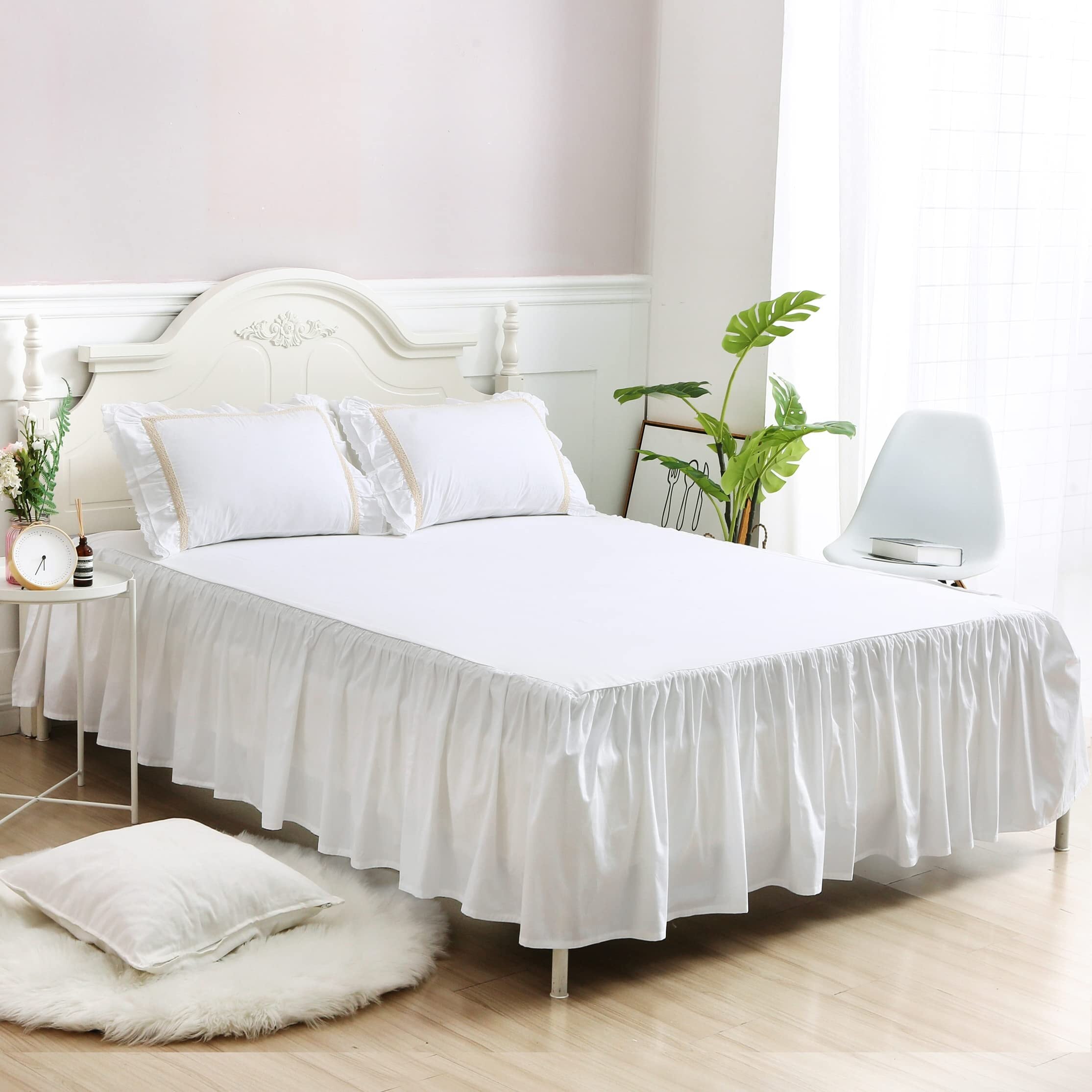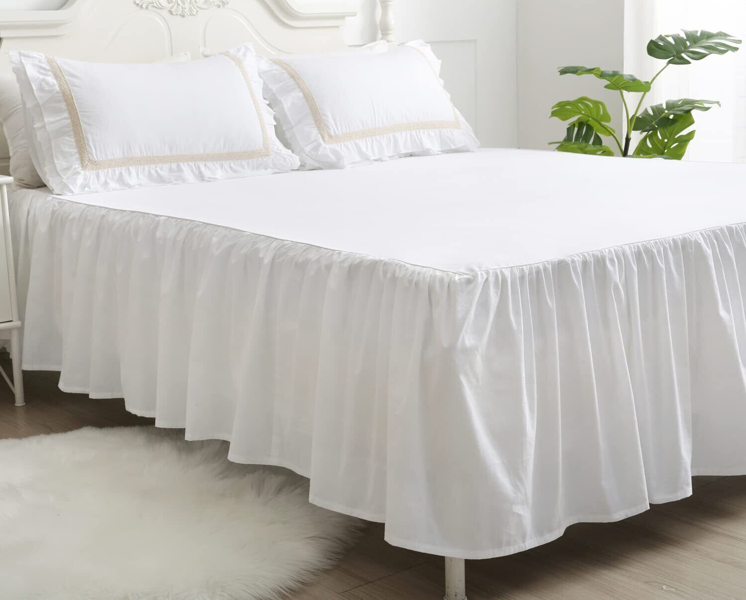 【特価セール】無地 ベッドスカート ベッドシーツ マットレス敷きカバー 肌に優しい ベッドスプレッド フリル 寝具カバー 敷きシーツ コットン 高通気性 耐久性 丸洗いok オールシーズン ベッドカバー ホワイト 120*200*43㎝ セミダブル