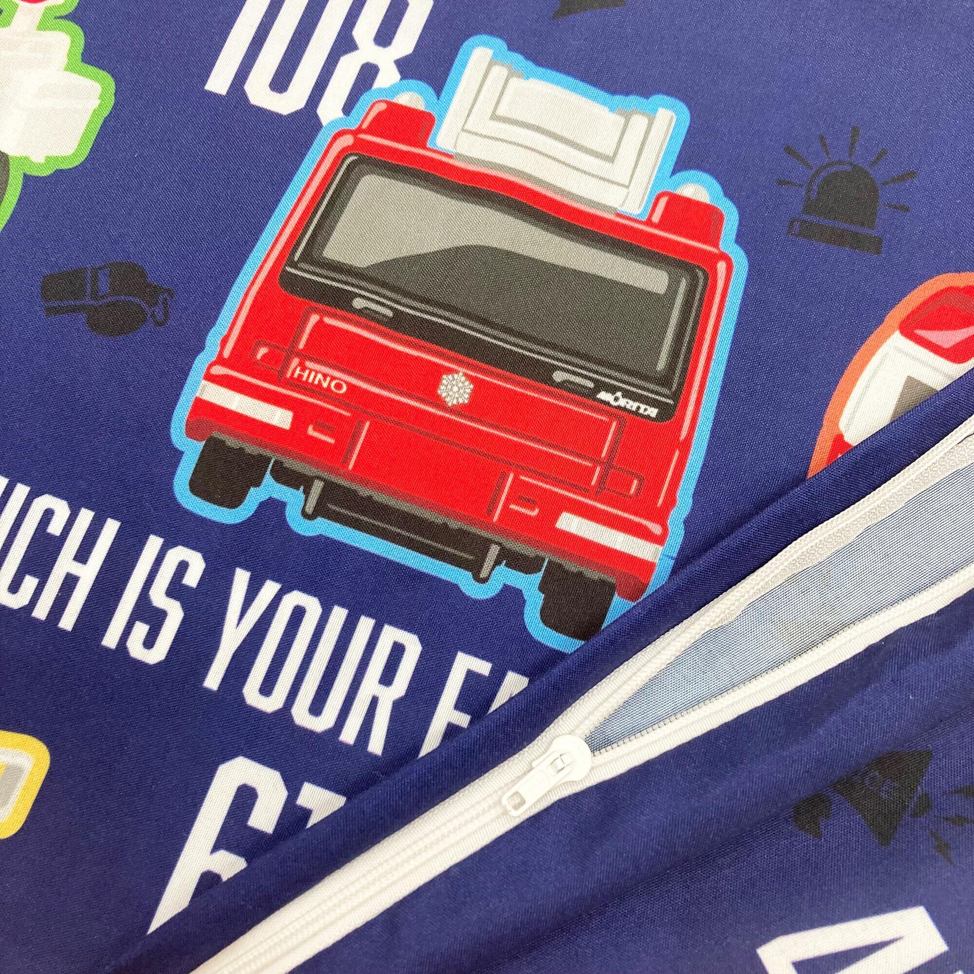 【特価セール】MORIPiLO トミカ 枕カバー (tomica 緊急車両 柔らかピーチスキン) ジュニアサイズ 子供用 ブルー 35x50cm グッズ ぬいぐるみ カバー ファスナー式 洗える 小さめ 可愛い パトカー 消防車 救急車 キャラクター まくらのモリシタ