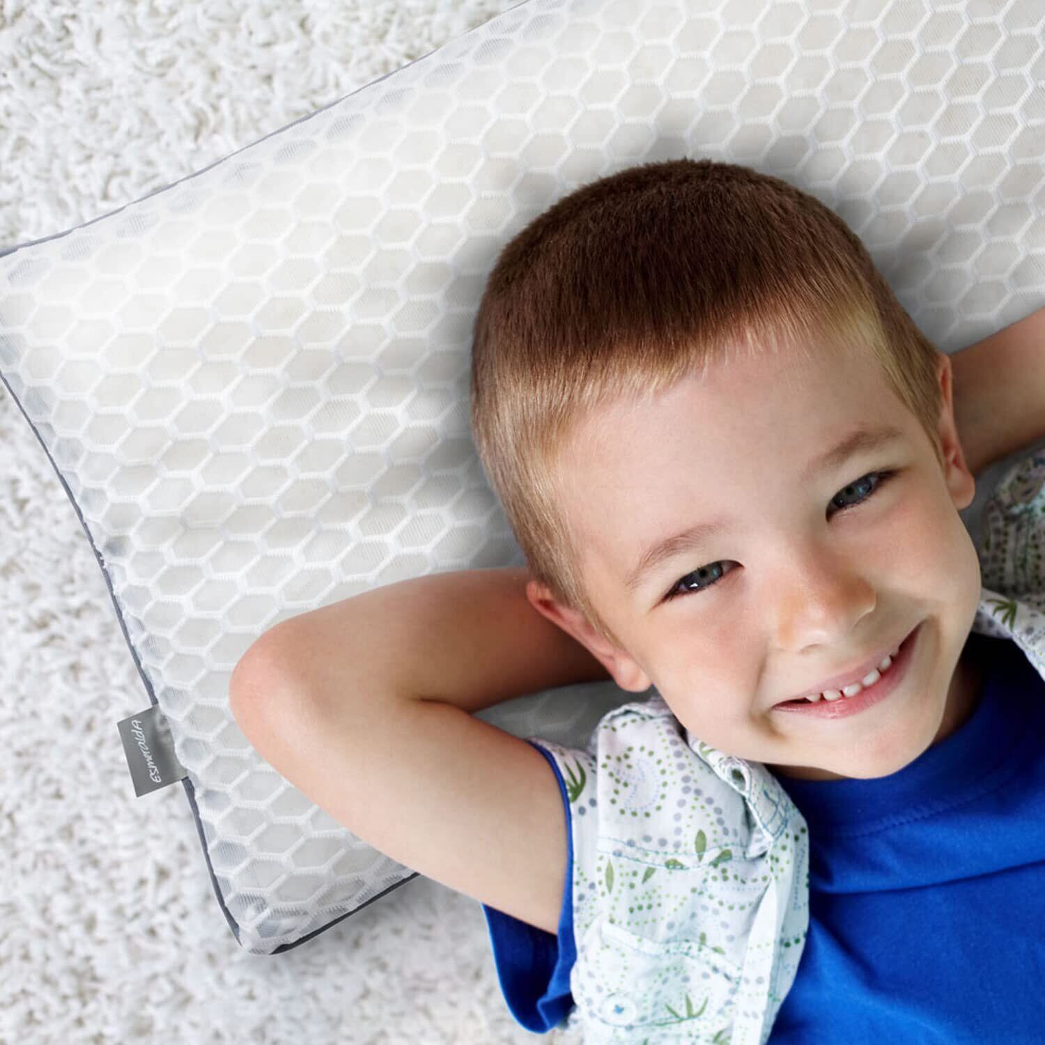 【子どもの成長に欠かせない「質の良い睡眠」をサポート】成長ホルモンは睡眠中に分泌されるため、正しい姿勢で眠れる枕選びが大切。EsmeraldAは、乳幼児期の枕に続き、小学生向けの専用枕を開発。