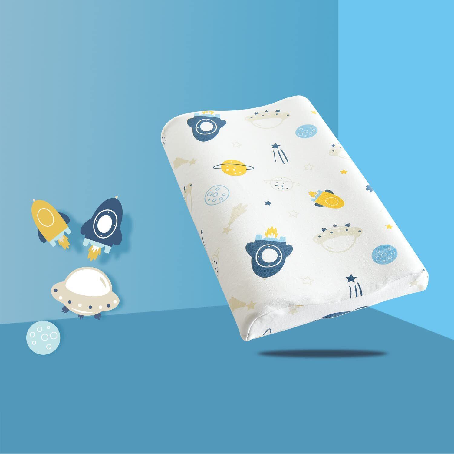 子ども用まくら 子供用低反発枕 メモリーフォーム素材 通気 快眠 高さ調整 向き癖防止 寝姿を矯正 カバー綿100%洗える 男女兼用 1~6歳適用 40*24*3/5cm 宇宙船図柄