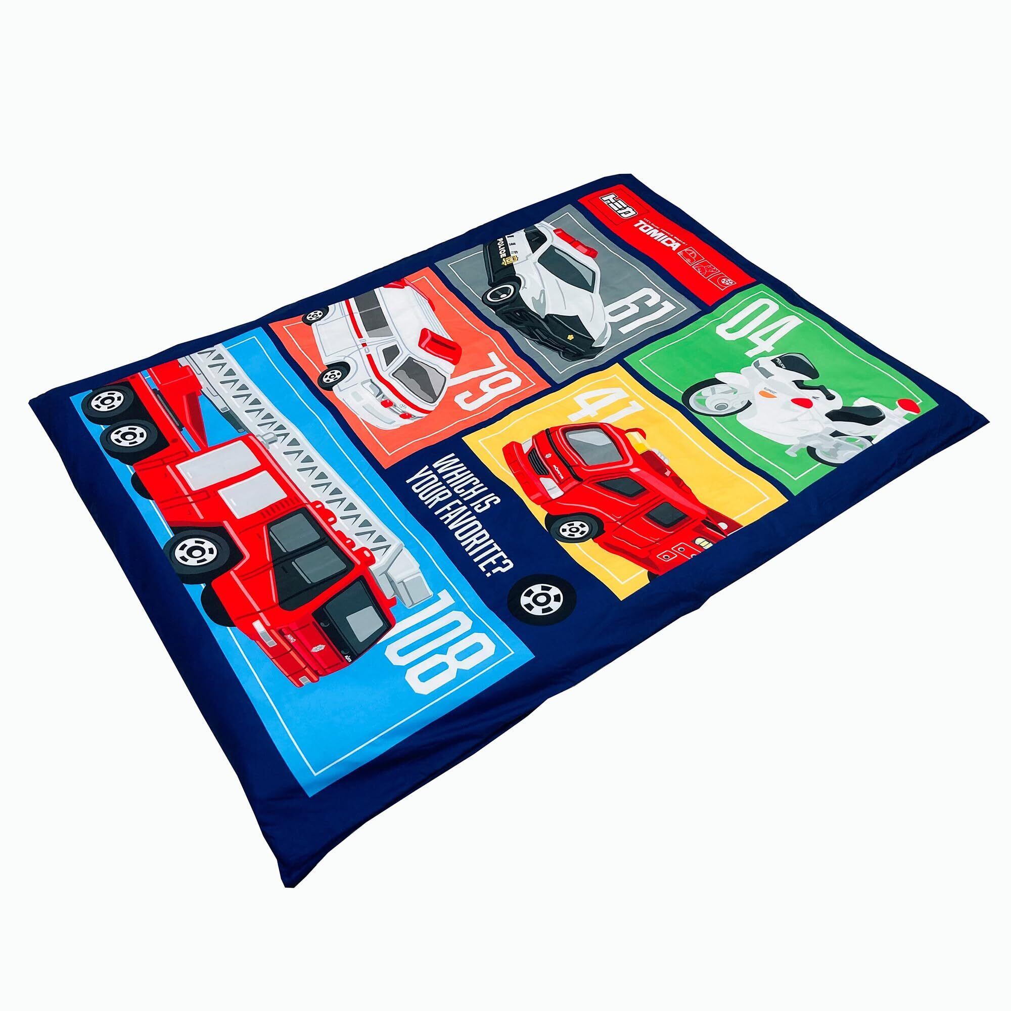 MORIPiLO トミカ 掛け布団カバー シングル (tomica 緊急車両 柔らかピーチスキン) ジュニアサイズ 子供用 ネイビー 130x180cm グッズ 可愛い パトカー 消防車 救急車 キャラクター まくらのモリシタ